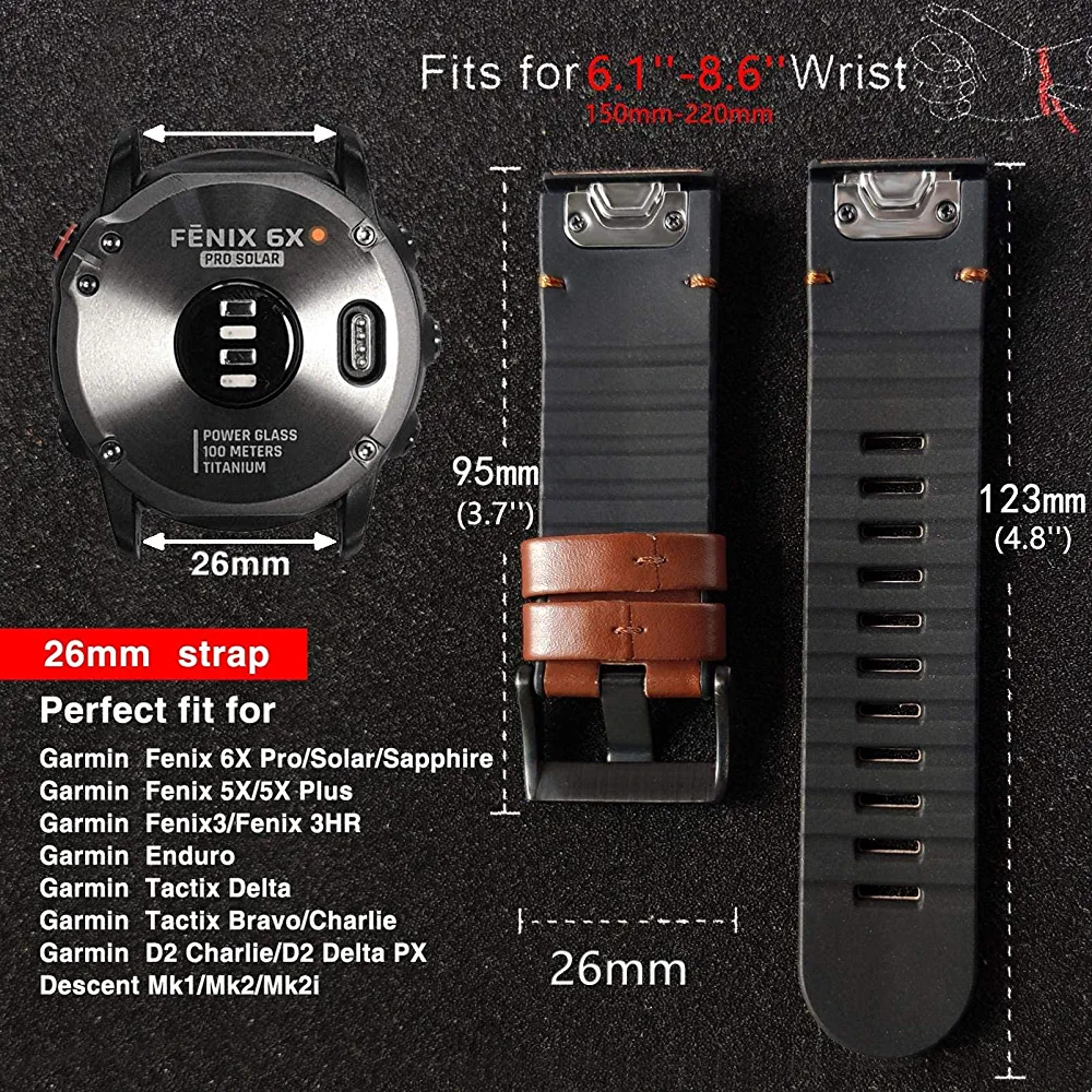 | nameOriginal | MAKINGTEC Watch Strap for Garmin Fenix 6X/ 5X/ 6/5, 26mm Soft Genuine Leather Hybrid Silicone Sweat Resistant Wristband, Quick and Easy Fit, Sweat Resistant (Brown) |