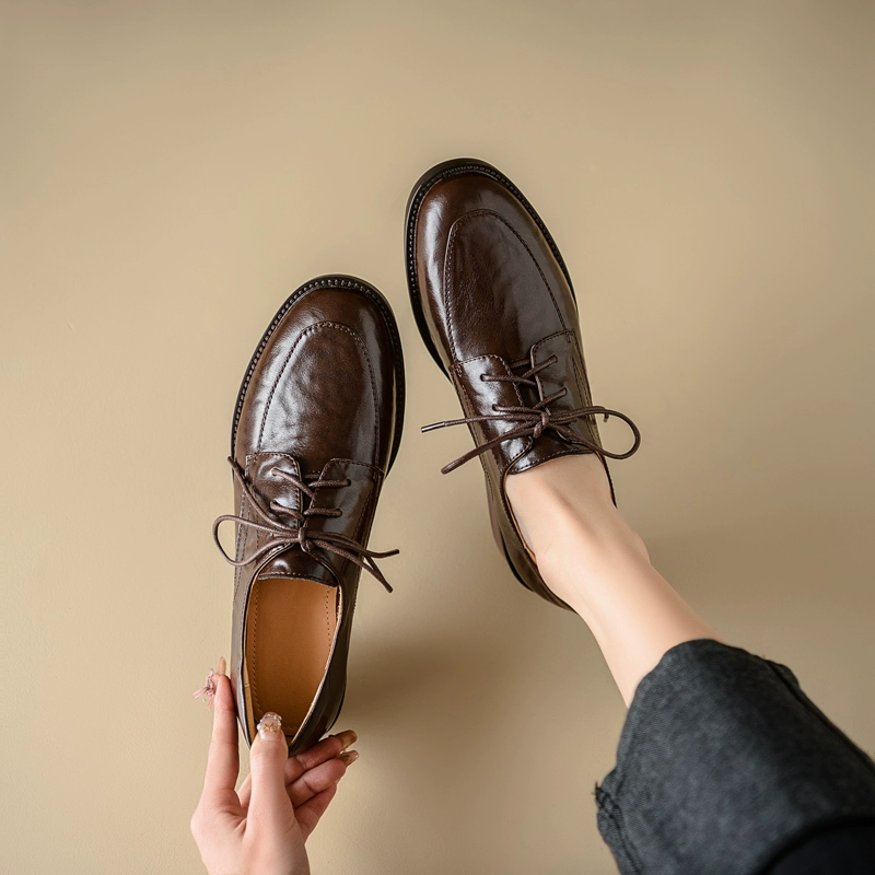 | nameOriginal | Brown medium heel brogue deep mouth large size small leather shoes |