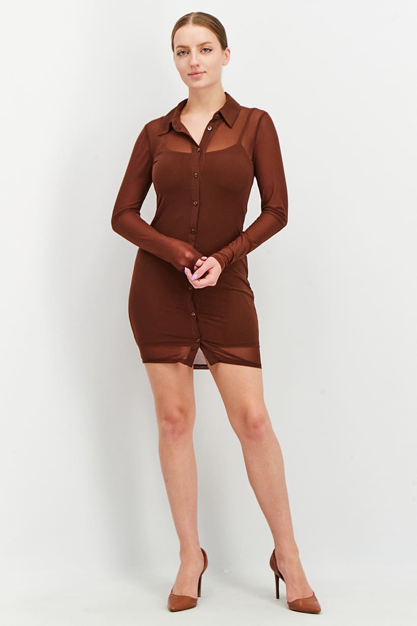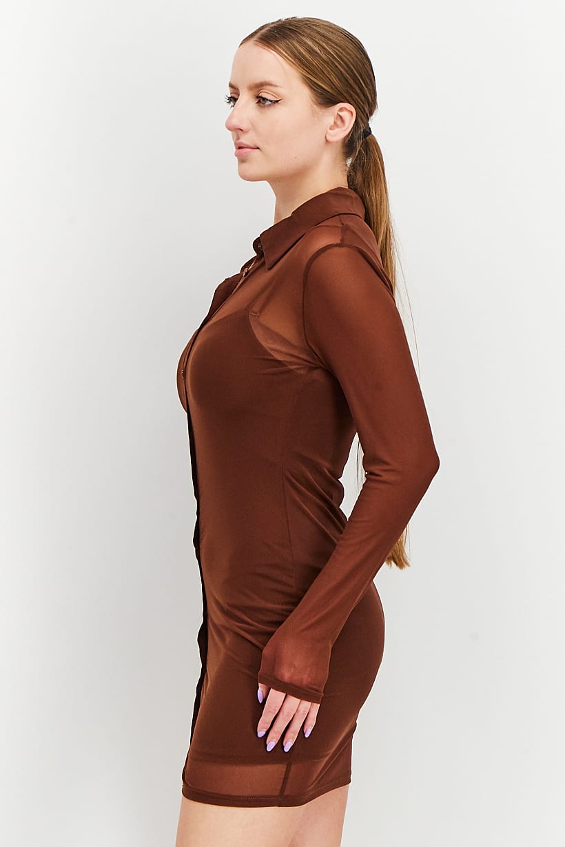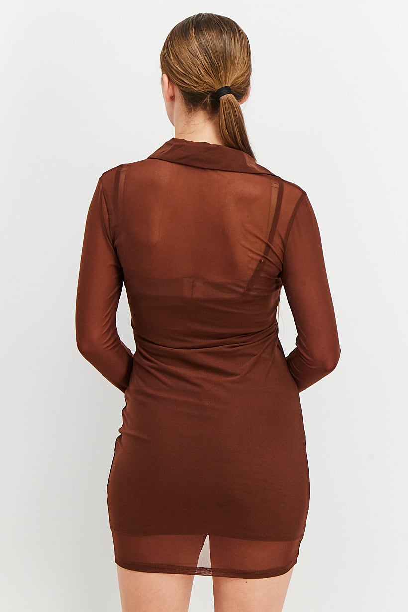 | nameOriginal | Women Mesh Long Sleeve Mini Dress, Brown |