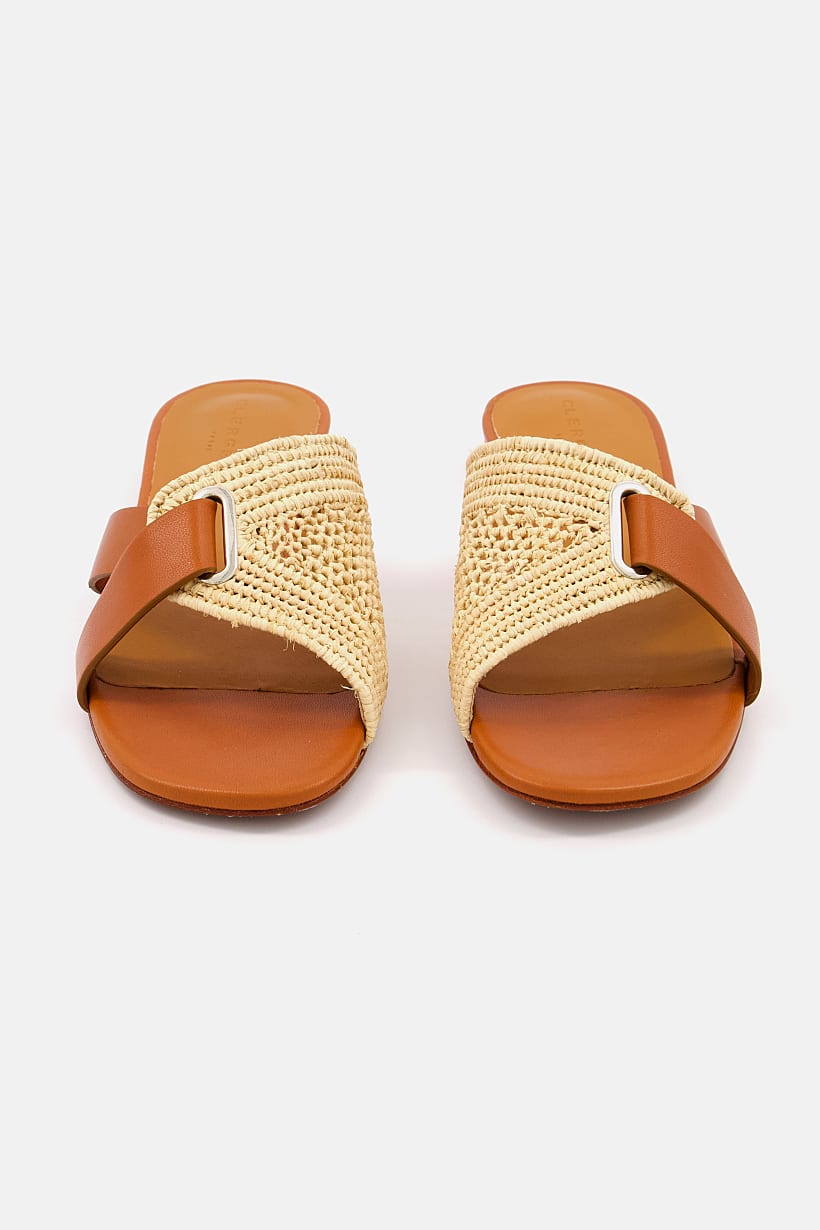 This product is a slip-on leather shoe designed for women. It features an open toe style and a synthetic sole material with no heel. The heel height is 0.39″ or 1 cm. The shoe is ideal for casual occasions and comes in a brown color family. Please note that the product color may vary slightly due to photographic lighting sources or monitor settings.