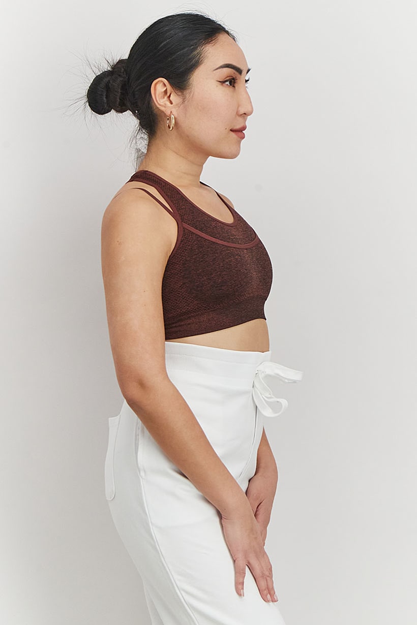 Care : Machine washable, Fit : Sportswear Fit, Size shown : International, Thickness : Light, Type of Sport : Training, Disclaimer : Product color may slightly vary due to photographic lighting sources or your monitor settings., Fabrics : 90% Cotton, 10% Spandex, Occasion : Sport, Pattern & Print : Textured pattern, Sportswear Type : Sports Bra, Color Family : Brown,