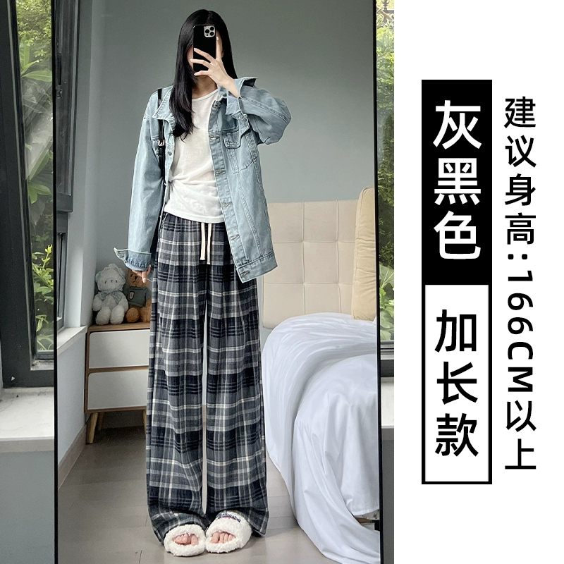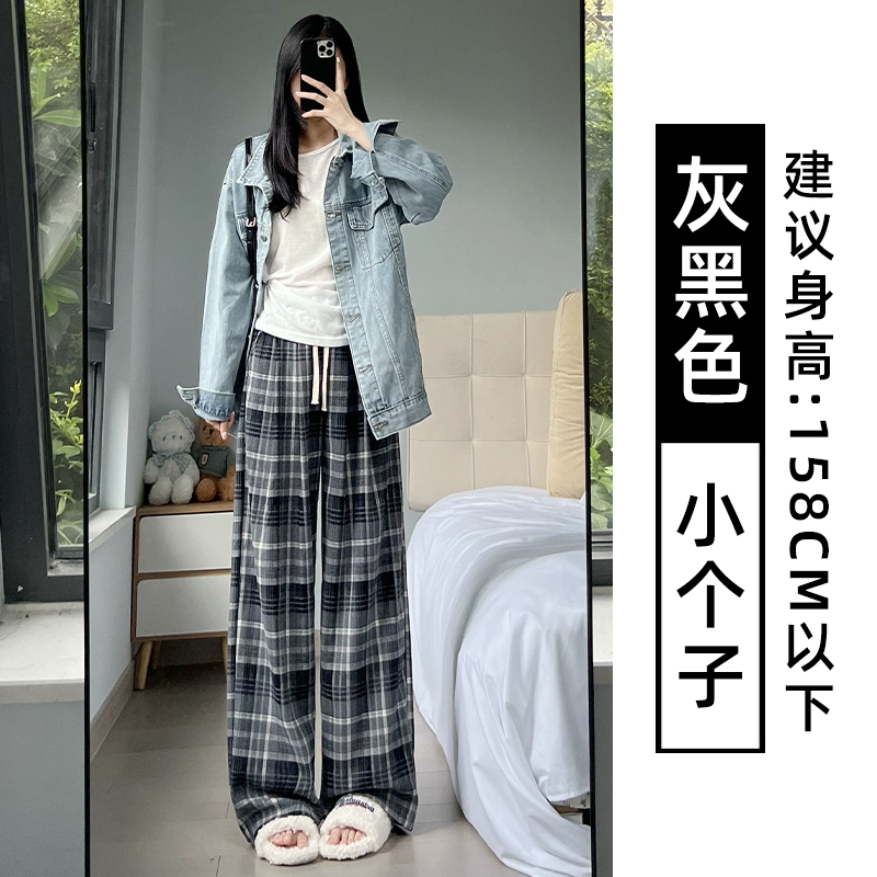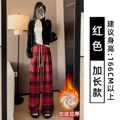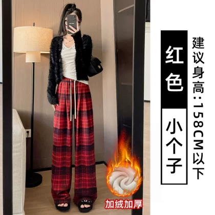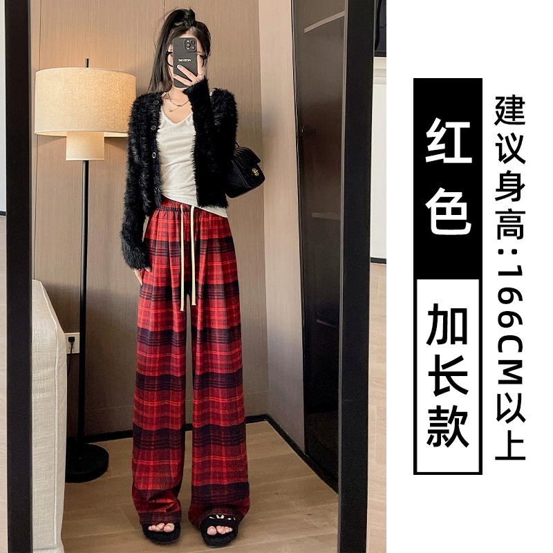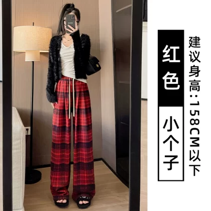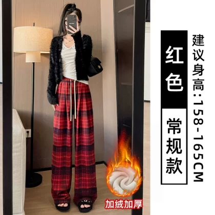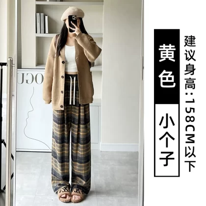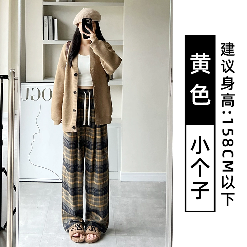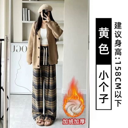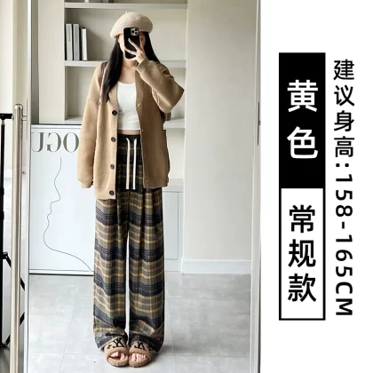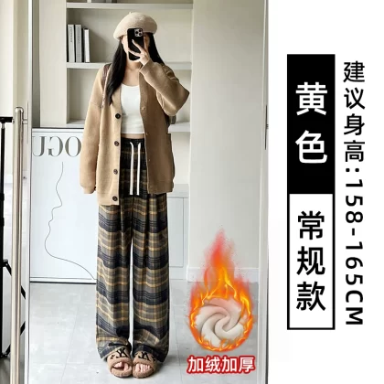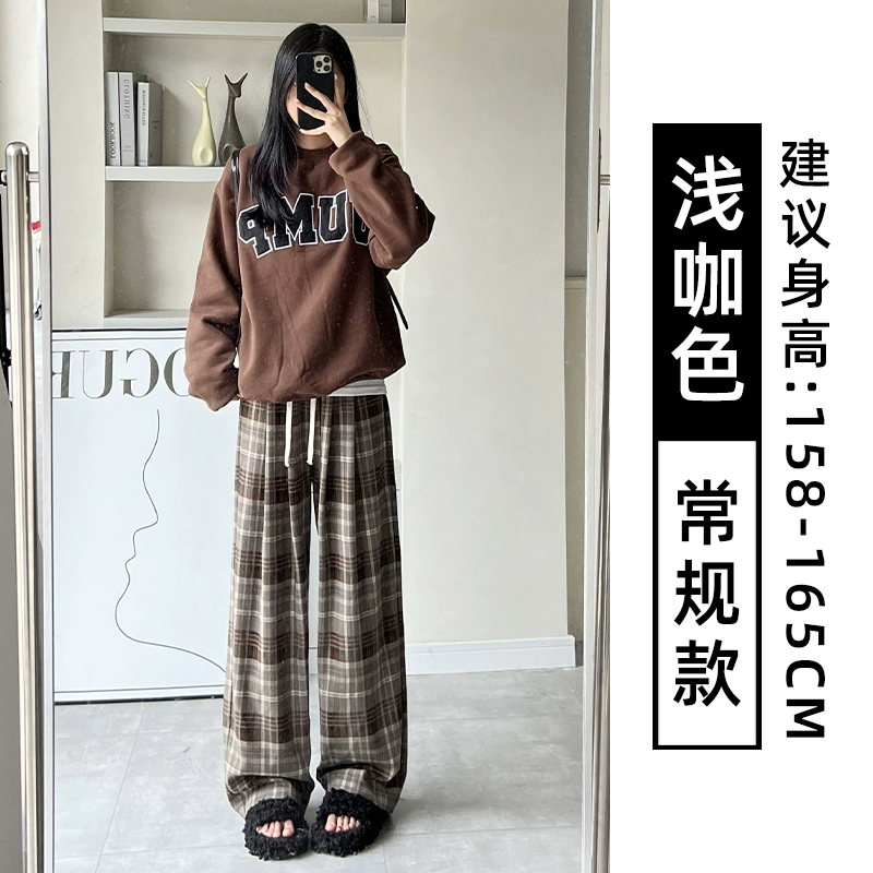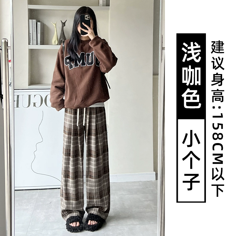 | nameOriginal | Brown plaid pants for women autumn and winter 2024 new high-waisted loose casual slim and drapey retro straight wide-leg pants |