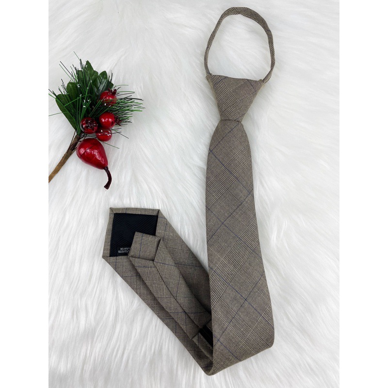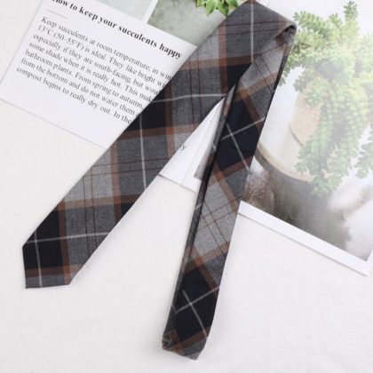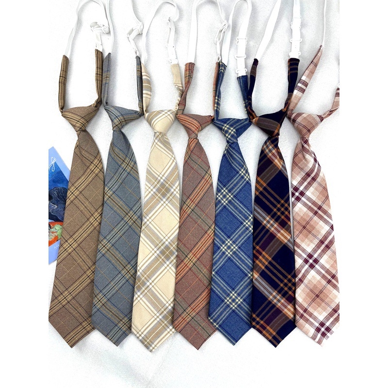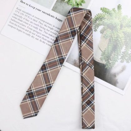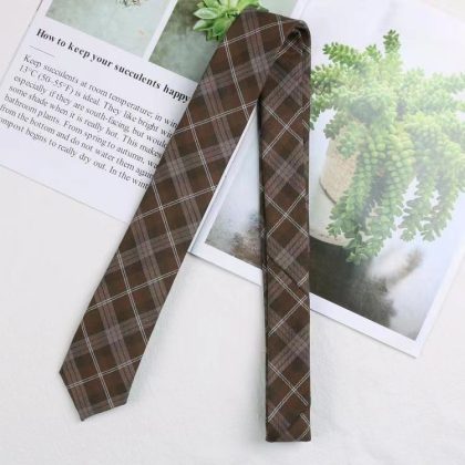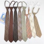 Brown retro khaki brown striped plaid zipper tie hand-hitting female lazy-free college British style