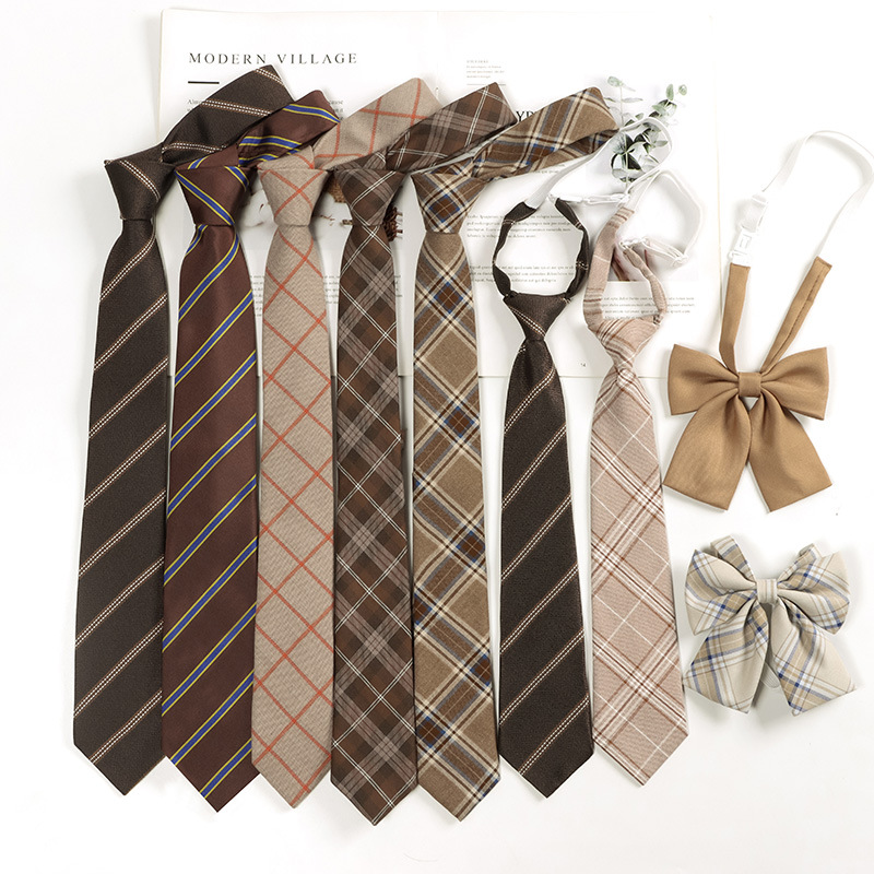 | nameOriginal | Brown Retro Plaid Striped Lazy No-Hit Japanese Brown Tie Women's Bow Tie Academic Style Men's Fashion |