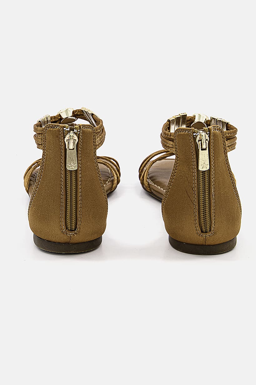 Heel Style : No heel, Ideal For : Women, Shoe Closure : Zipper closure, Sole Material : Synthetic sole, Toe Style : Open toe, Occasion : Casual, Shoe Material : Synthetic Leather, Color Family : Brown,