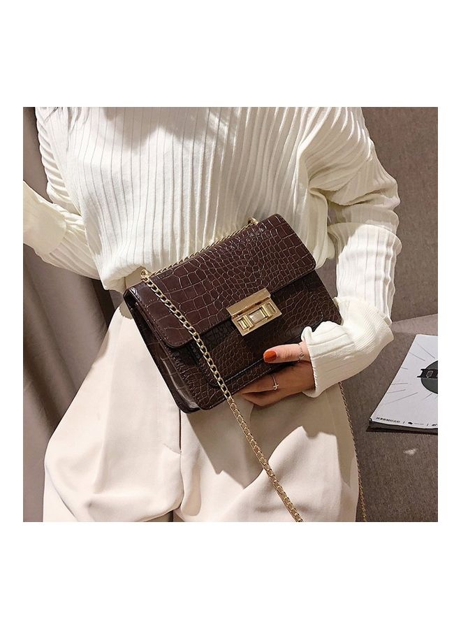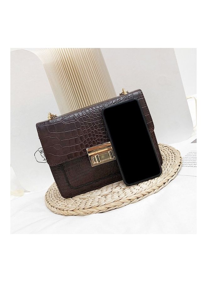 Brown Shoulder Bag with Square Rivet Chain.