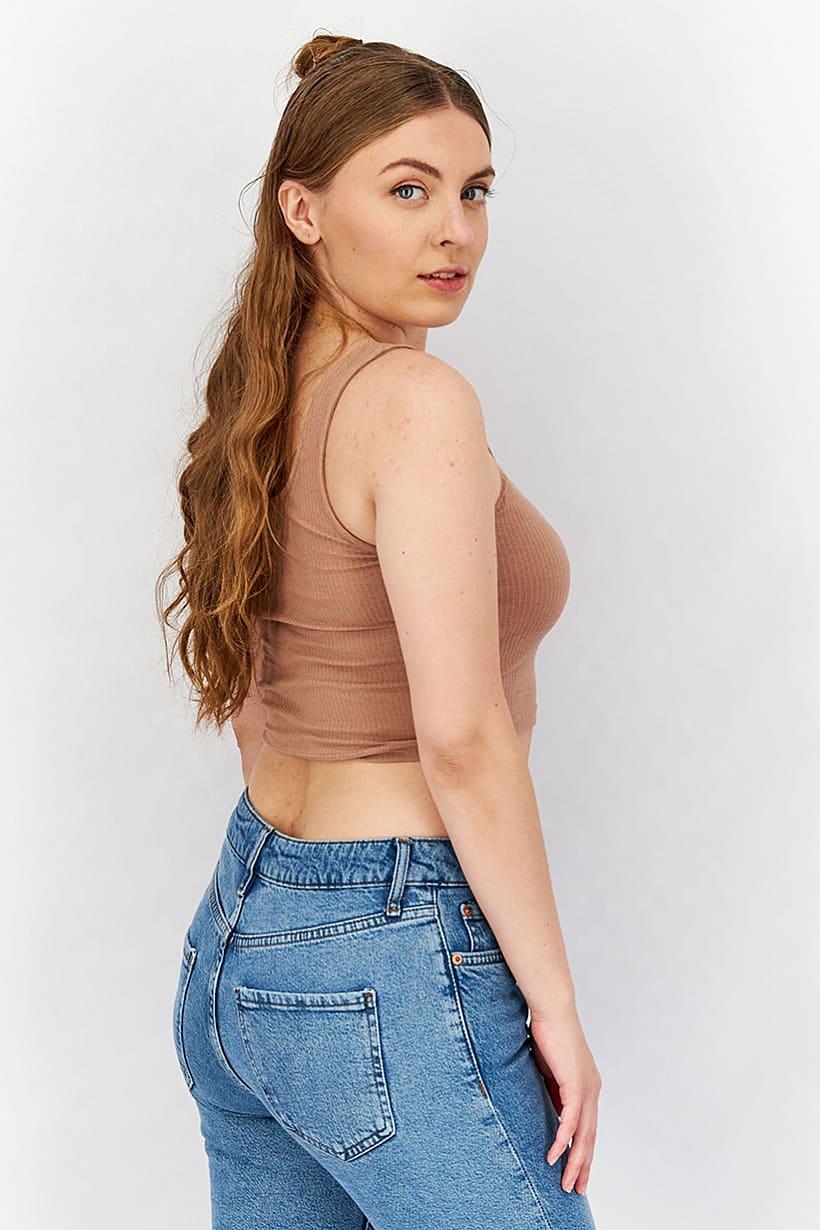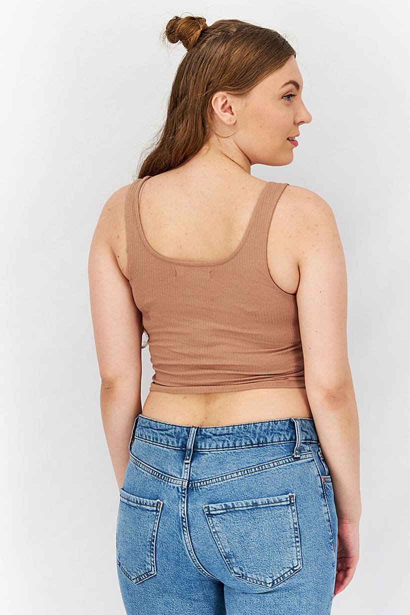 | nameOriginal | Women Scoop Neckline Sleeveless Textured Cropped Top, Brown |