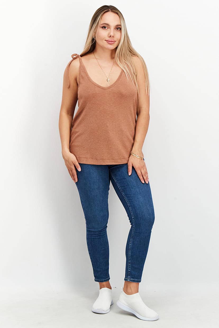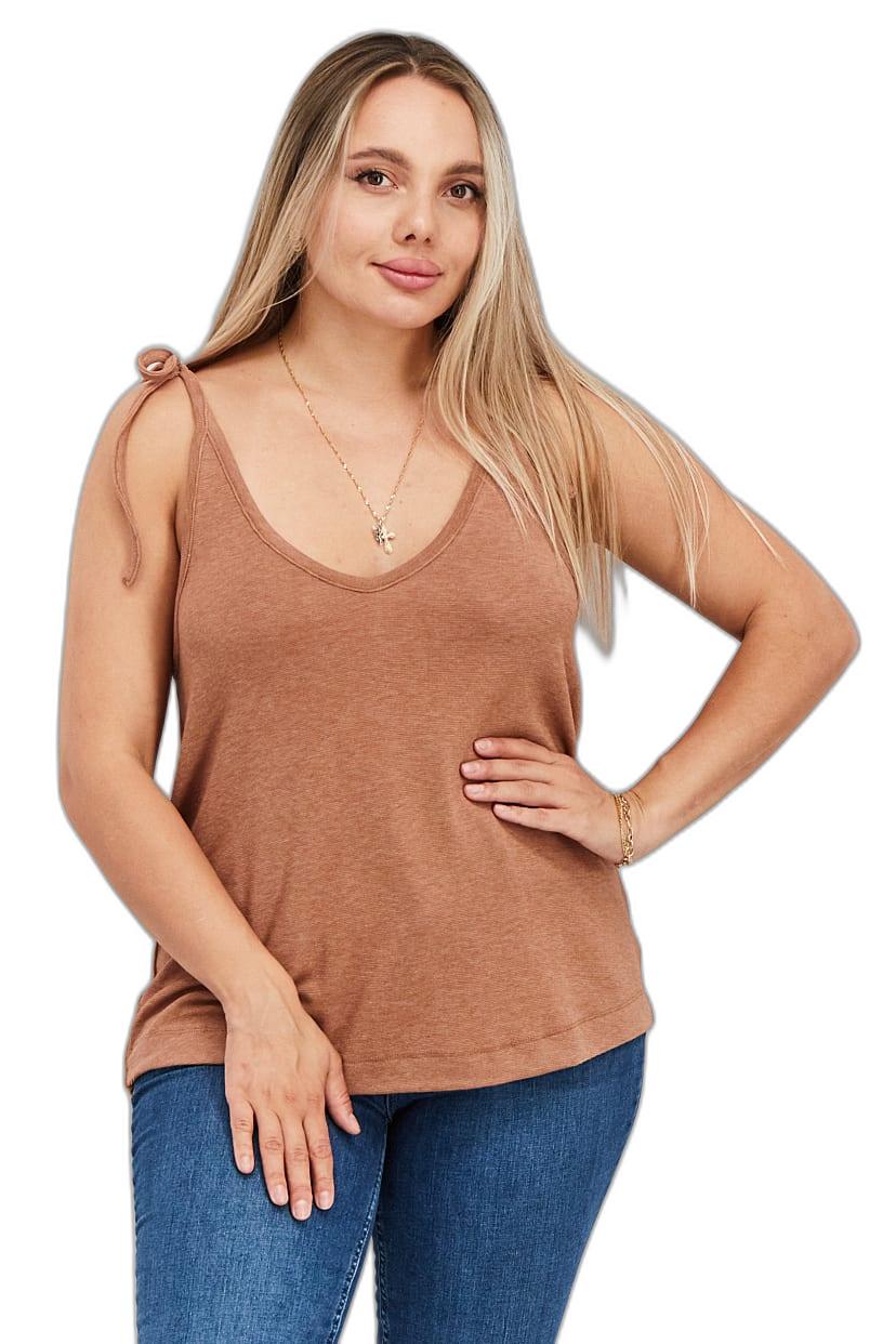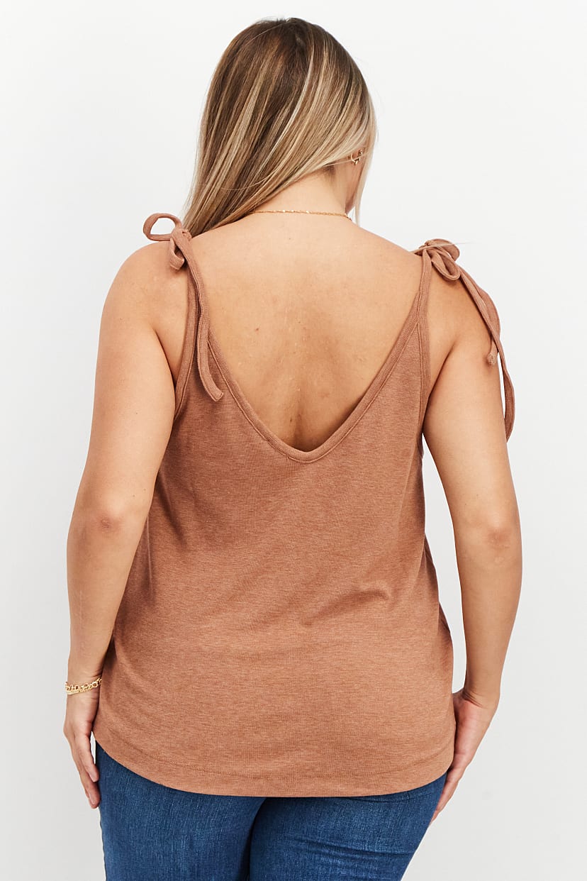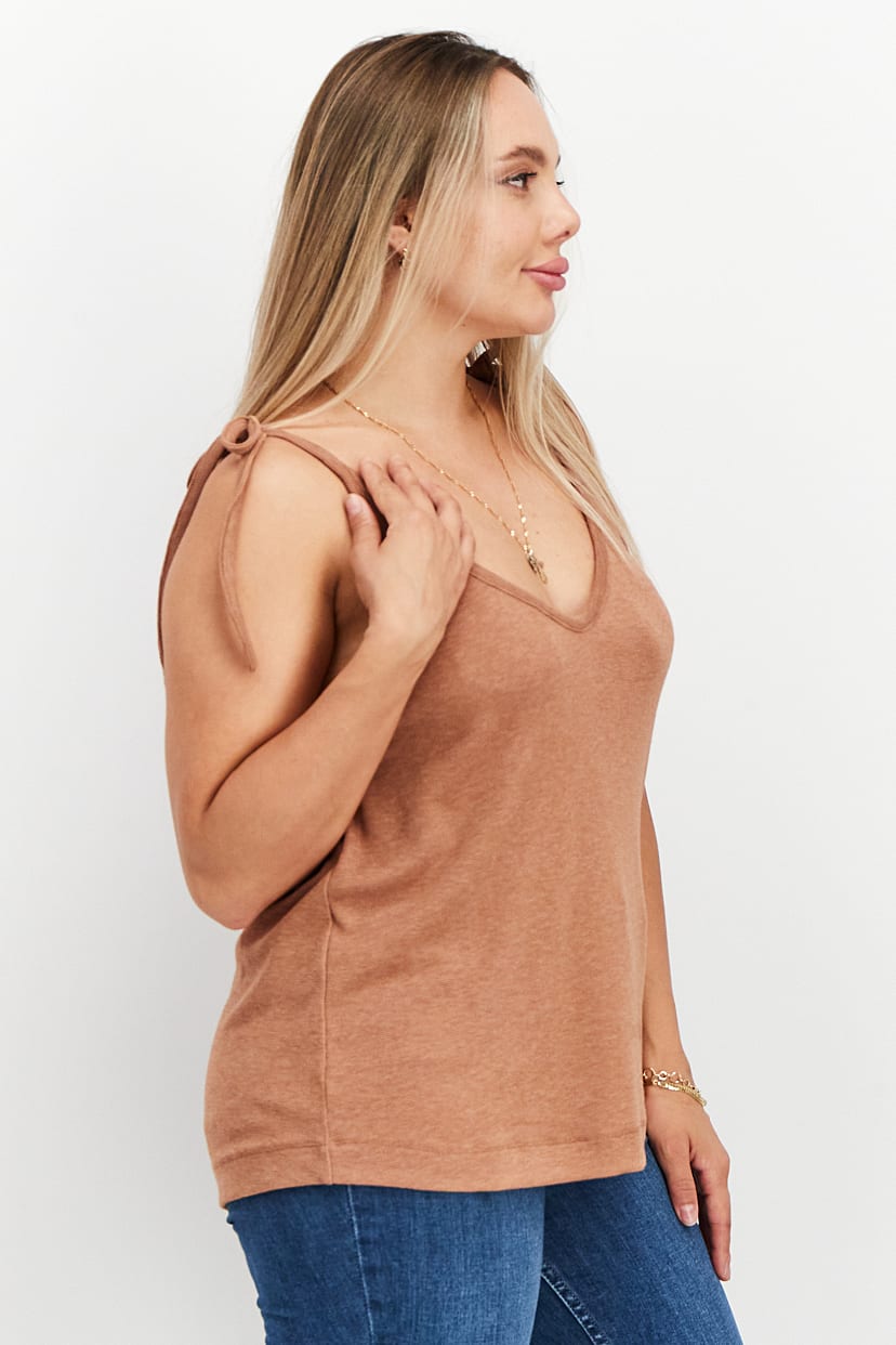 | nameOriginal | Women V Neck Tie Sleeve Solid Tops, Brown |