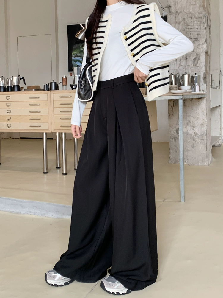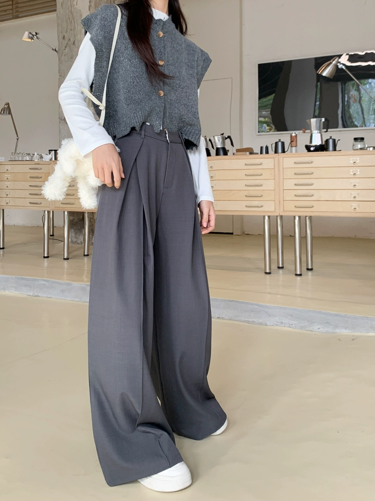 | nameOriginal | Brown spring high-waisted pleated loose floor-length pants suit |