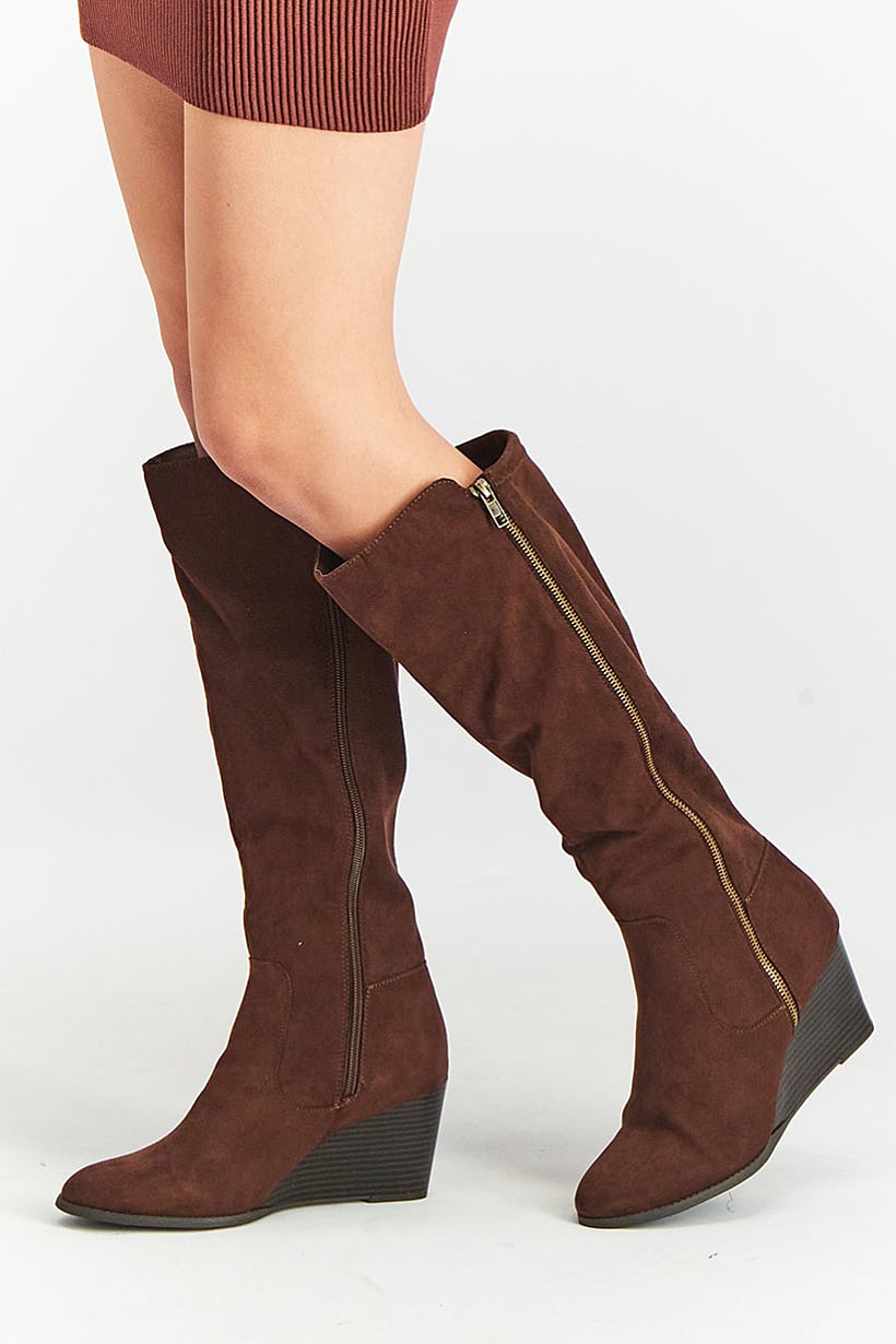 | sub_Categories | Shoes, Boots, women zipper closure suede mid calf boots brown |