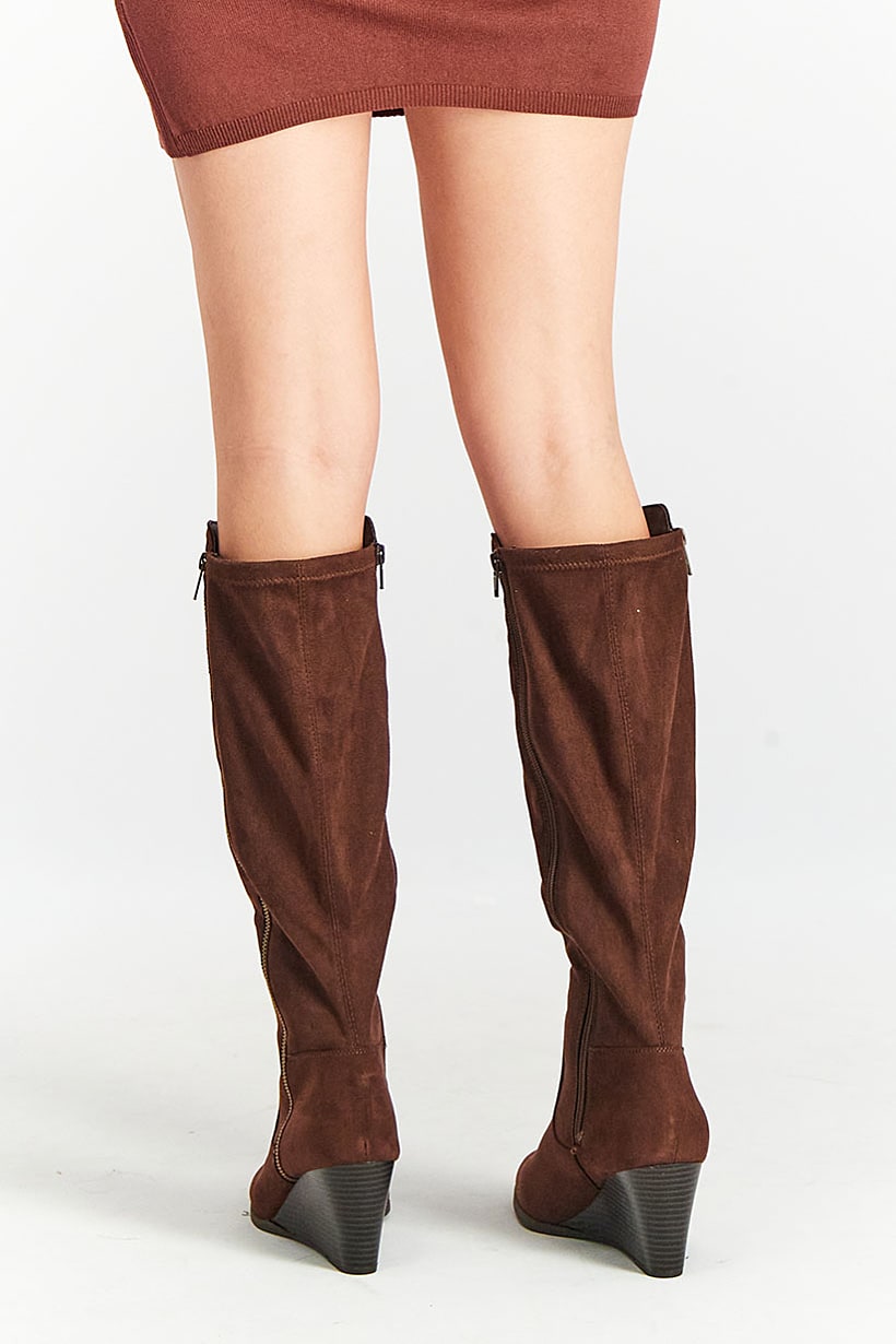 | descriptionOriginal | Heel Height : 2.75" / 6.9 cm, Heel Style : Wedge heel, Ideal For : Women, Shoe Closure : Zipper closure, Shoe Width : Standard, Sole Material : Latex sole, Style : Mid Calf Boot, Toe Style : Closed toe, Shoe Material : Faux suede, Color Family : Brown, Disclaimer : Product color may slightly vary due to photographic lighting sources or your monitor settings., Occasion : Casual, |