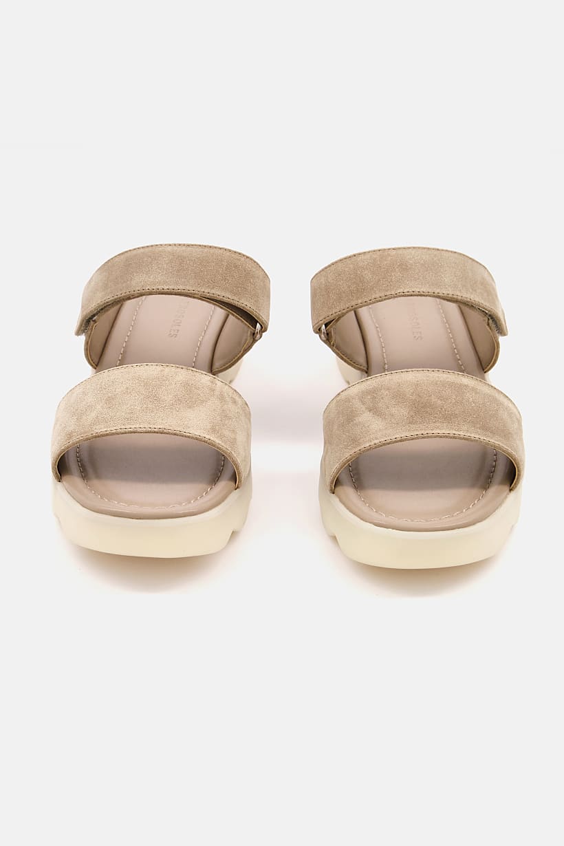 | descriptionOriginal | Heel Height : 1.5" / 3.8 cm, Heel Style : No heel, Ideal For : Women, Shoe Closure : Slip on, Sole Material : Rubber sole, Toe Style : Open toe, Disclaimer : Product color may slightly vary due to photographic lighting sources or your monitor settings., Occasion : Casual, Shoe Material : Suede , Color Family : Brown, |