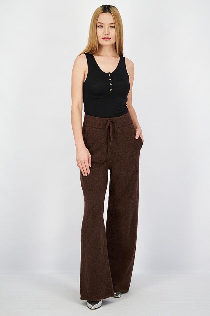 Care : Machine washable, Fit : Regular fit, Size shown : US, Types of Jeans Rise : High rise, Bottom Closure : Drawstring, Bottom Style/Pattern : Side pockets, Disclaimer : Product color may slightly vary due to photographic lighting sources or your monitor settings., Fabrics : 39% Polyamide, 35% Acrylic, 24% Wool, 2% Elastane, Occasion : Casual, Color Family : Brown,
