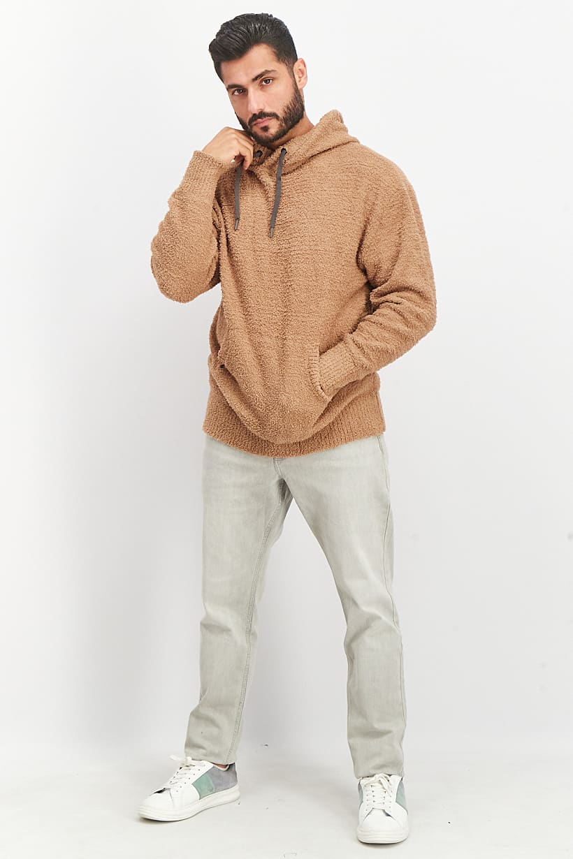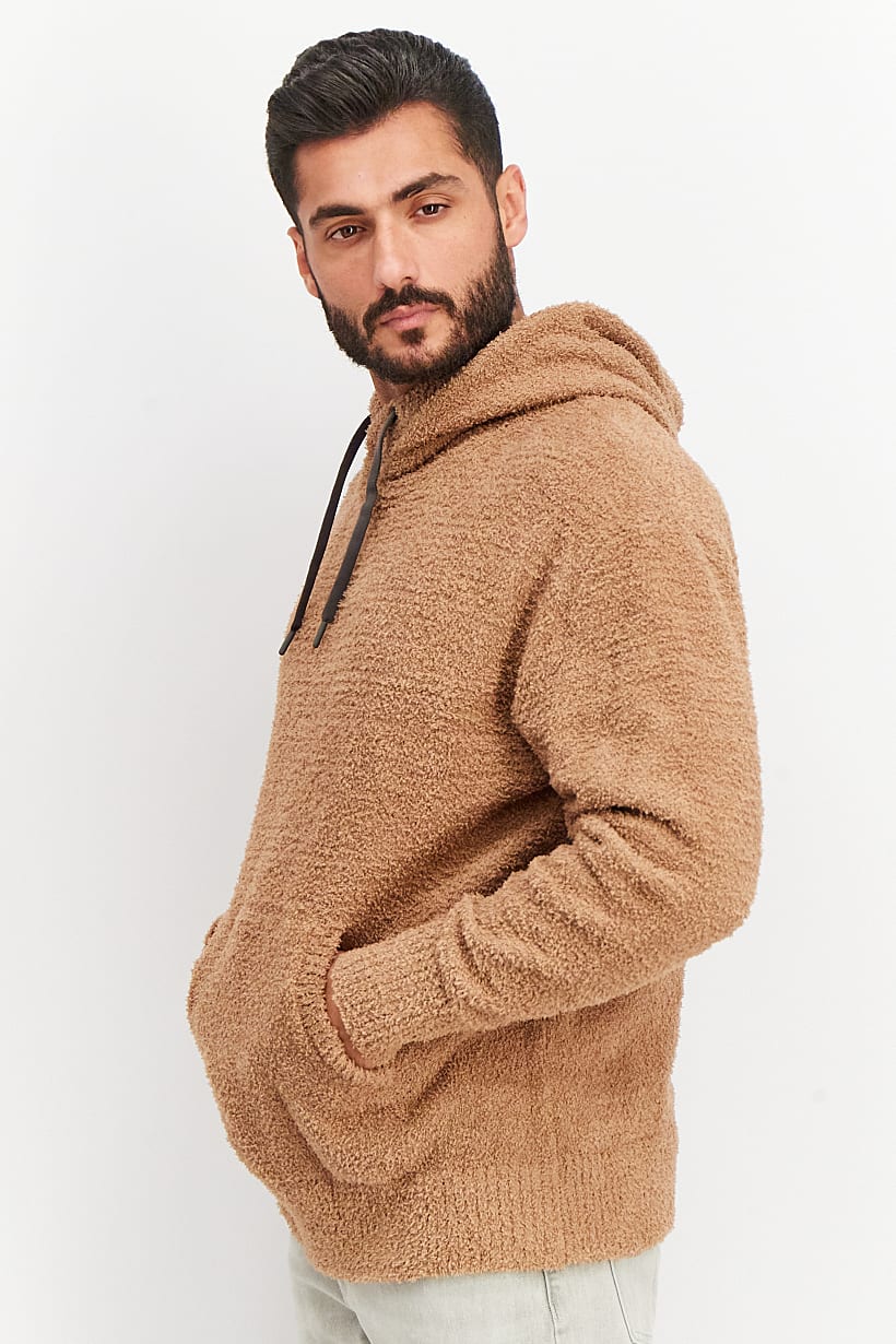 Care : Machine washable, Ideal For : Men, Size shown : International, Sleeve Length : Long Sleeve, Sweater Style : Hoodies, Thickness : Medium, Types of Hem : Straight hem, Types of Neckline & Collar : Hood with drawstrings, Types of Sleeve : Longsleeve, Disclaimer : Product color may slightly vary due to photographic lighting sources or your monitor settings., Fabrics : 100% Polyester, Occasion : Casual, Pattern & Print : Textured pattern, Types of Closures : Drawstring, Pullover, Color Family : Brown,