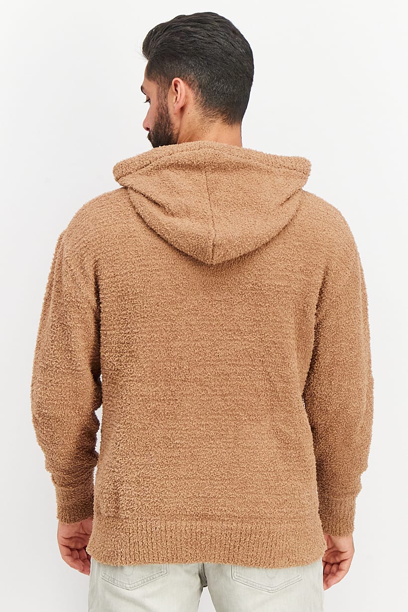 Brown Textured Hooded Sweater for Men with Long Sleeves.