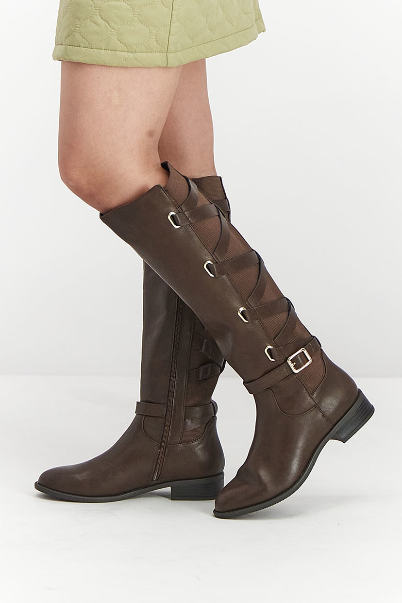Heel Style : Block heel, Ideal For : Women, Shoe Closure : Zipper closure, Shoe Width : Medium, Sole Material : Synthetic sole, Style : Calf-length boot, Toe Style : Almond toe, Disclaimer : Product color may slightly vary due to photographic lighting sources or your monitor settings., Occasion : Casual, Shoe Material : Synthetic Leather, Color Family : Brown,