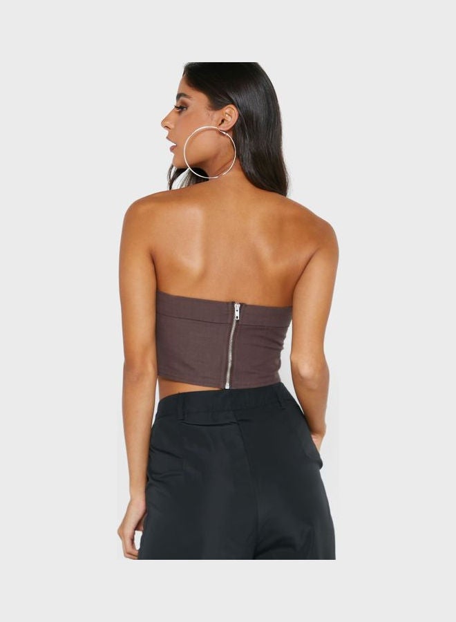 Introducing a stunning and adaptable piece to elevate your wardrobe. This top features a flattering tube neckline and a padded bust for added comfort. The reverse boasts a visible zipper placket for a touch of edginess. Please note that each item is sold separately. Crafted from pure cotton, this top is not only stylish but also soft and comfortable to wear.