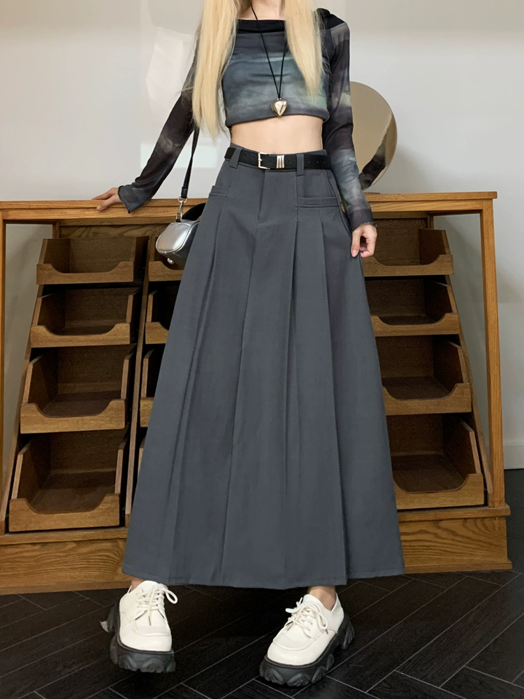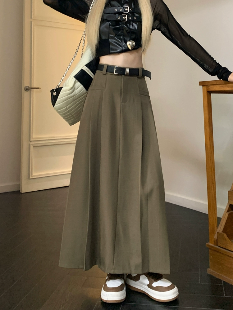 | nameOriginal | Brown women's summer fat mm A-line pleated skirt suit |