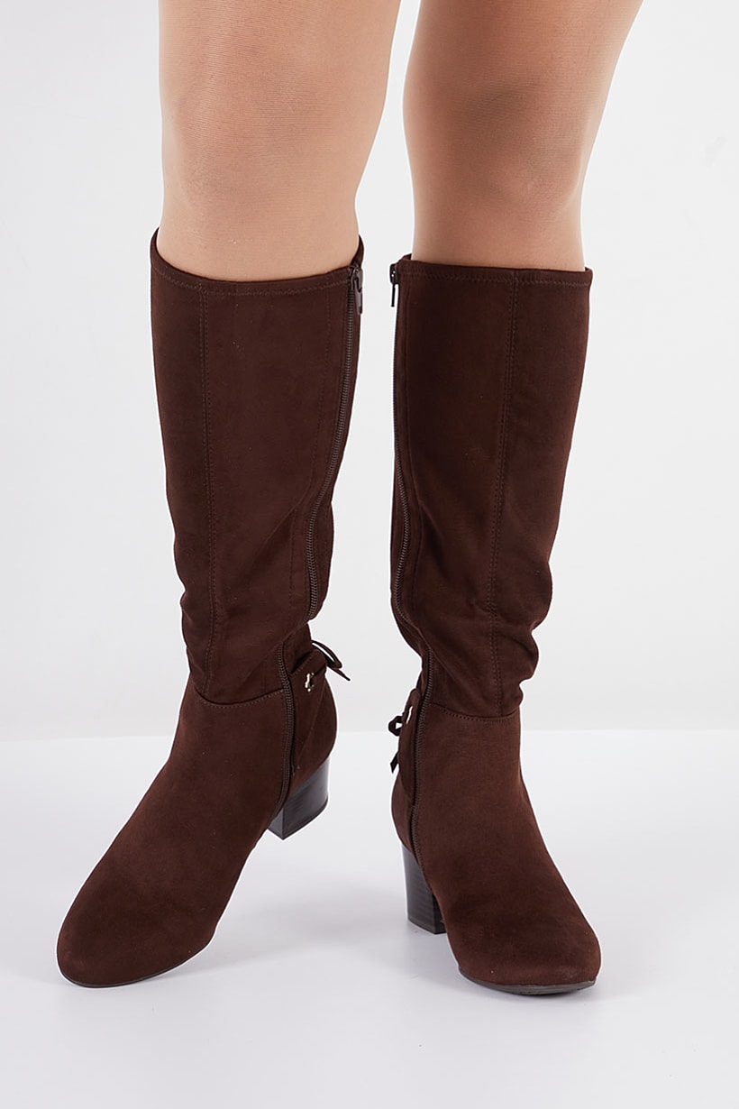 | descriptionOriginal | Heel Height : 2.25" / 5.7 cm, Heel Style : Block heel, Ideal For : Women, Shoe Closure : Zipper closure, Shoe Width : Medium, Sole Material : Synthetic sole, Style : Calf-length boot, Toe Style : Closed toe, Disclaimer : Product color may slightly vary due to photographic lighting sources or your monitor settings., Occasion : Casual, Shoe Material : Suede , Color Family : Brown, |