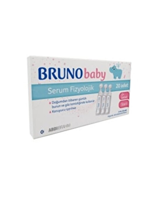 Bruno Baby Serum Physiological 20 Vial 5 ml is a disposable nasal and eye drops without preservatives that you can safely use from birth. Suitable for use by babies, children or adults. It is used for daily cleaning of the nose and eyes. Bruno Baby Serum Physiological 20 Vial 5 ml provides hygienic washing of babies' noses while also helping to relieve nasal congestion. Method of Use Use for nose Bruno Baby Serum Physiological 20 Vial The top of the single dose vial for 5 ml use is rotated and unplugged. With the head slightly oblique, the tip of the vial is inserted into the baby's nostril, and then the vial is squeezed by pressing slightly. After application, the baby's nose is gently squeezed and cleaned. Use For Eye One piece of cotton Bruno Baby Serum Physiological 20 Vial is wetted with 5 ml, the baby's eyelids are gently wiped or by dripping a few drops from the vial into the eye, the eye edges of the baby are cleaned with the help of a sterile compress.