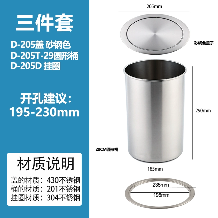 | nameOriginal | Brushed round stainless steel trash can for kitchen and bathroom |