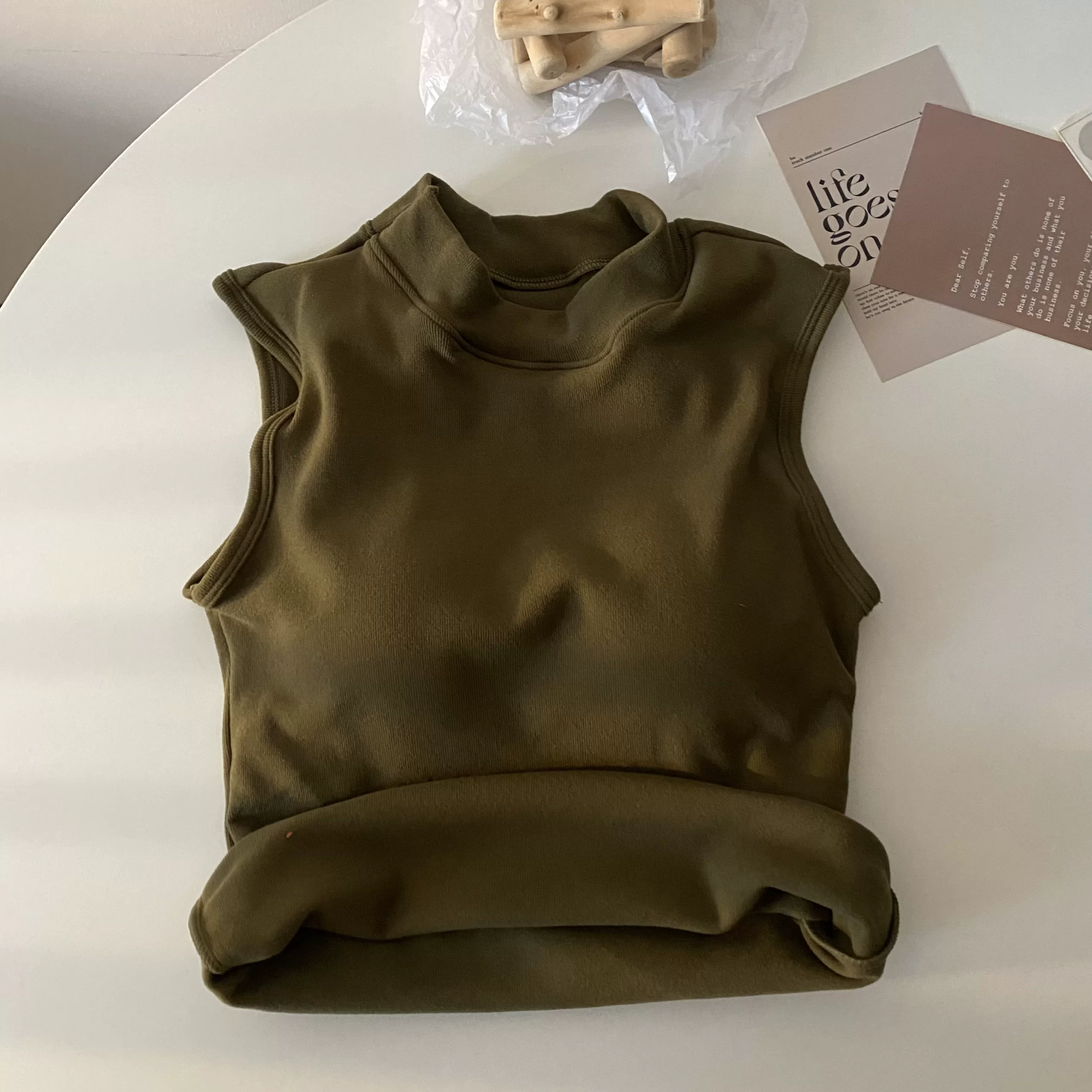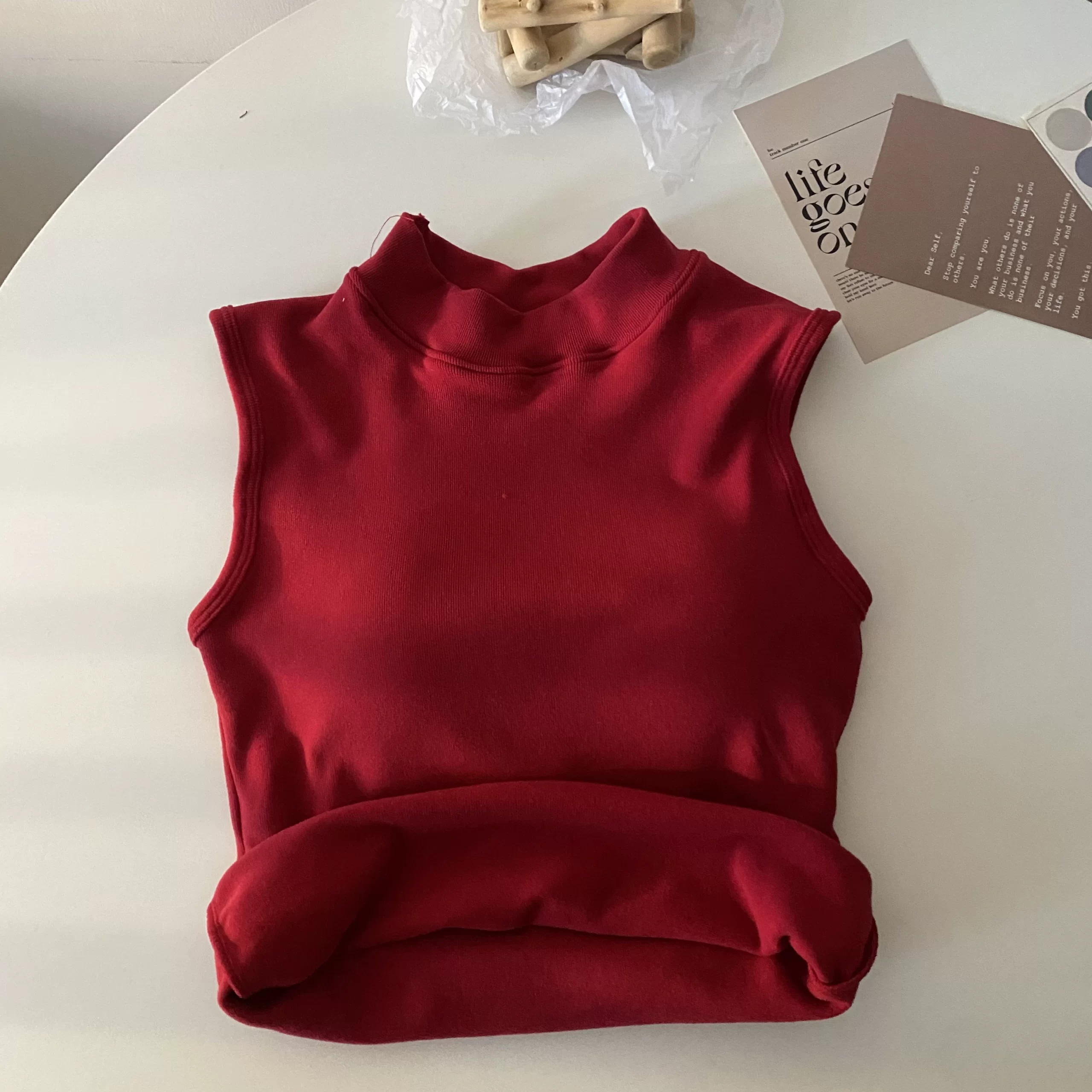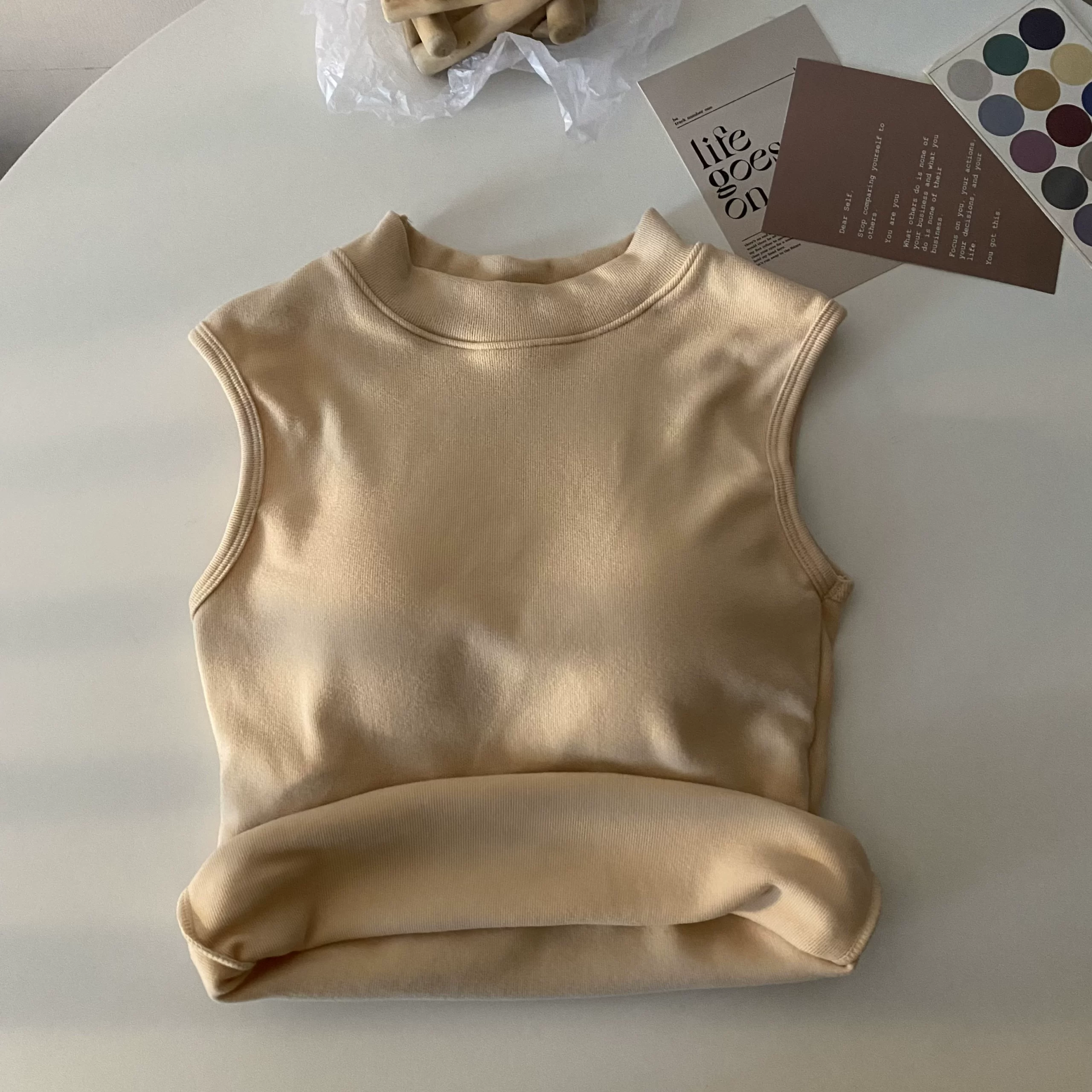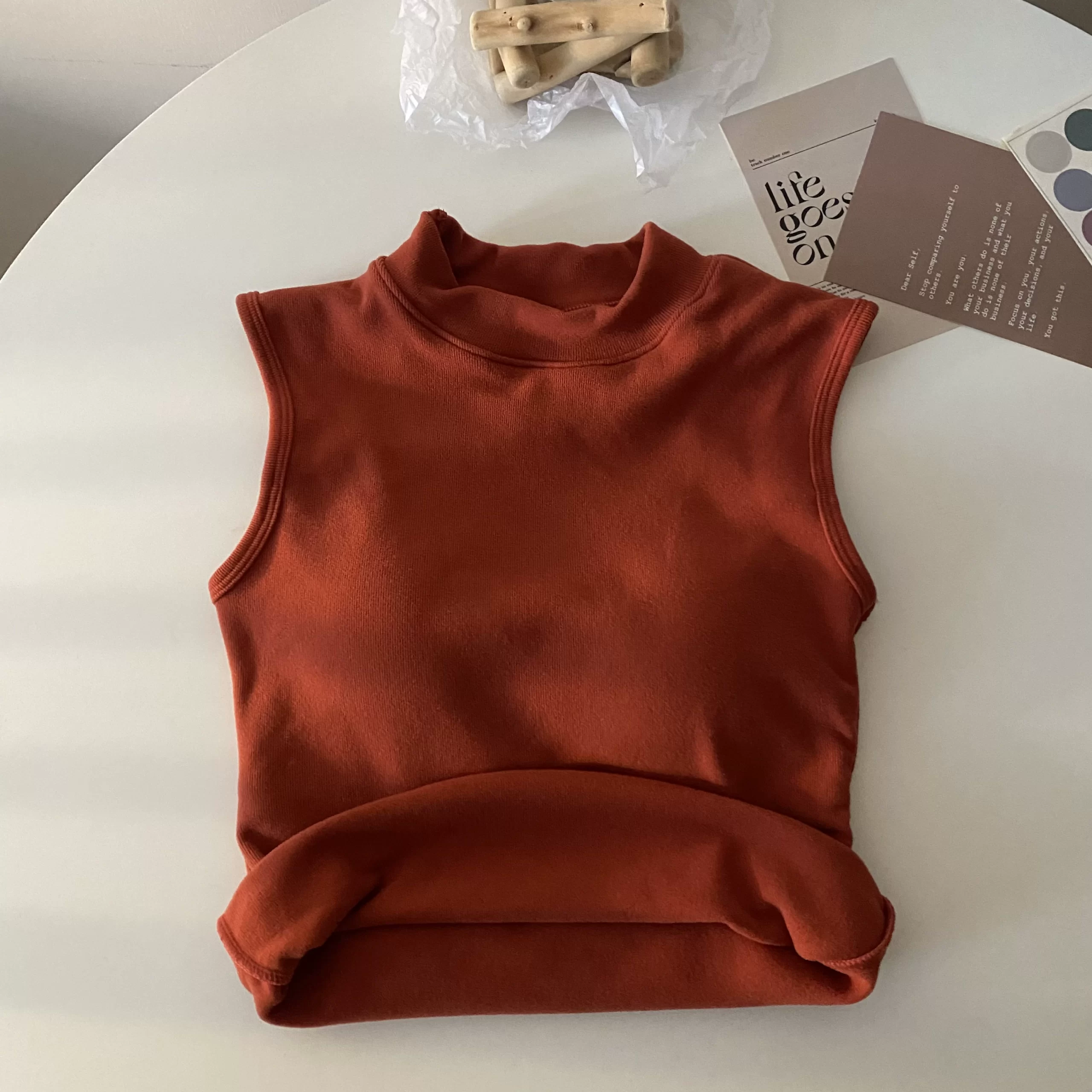 | nameOriginal | Brushed thickened apricot color sleeveless thermal slim vest |