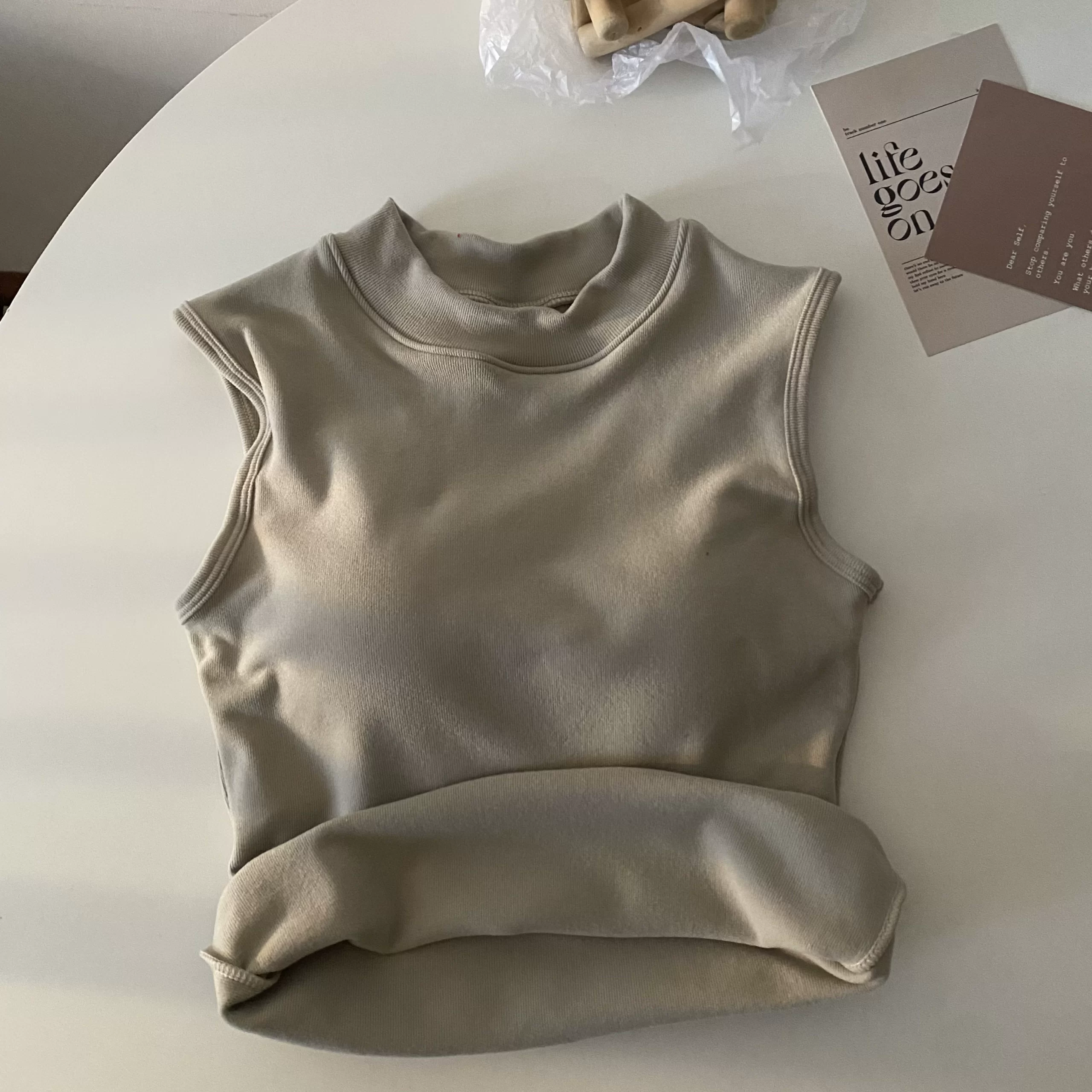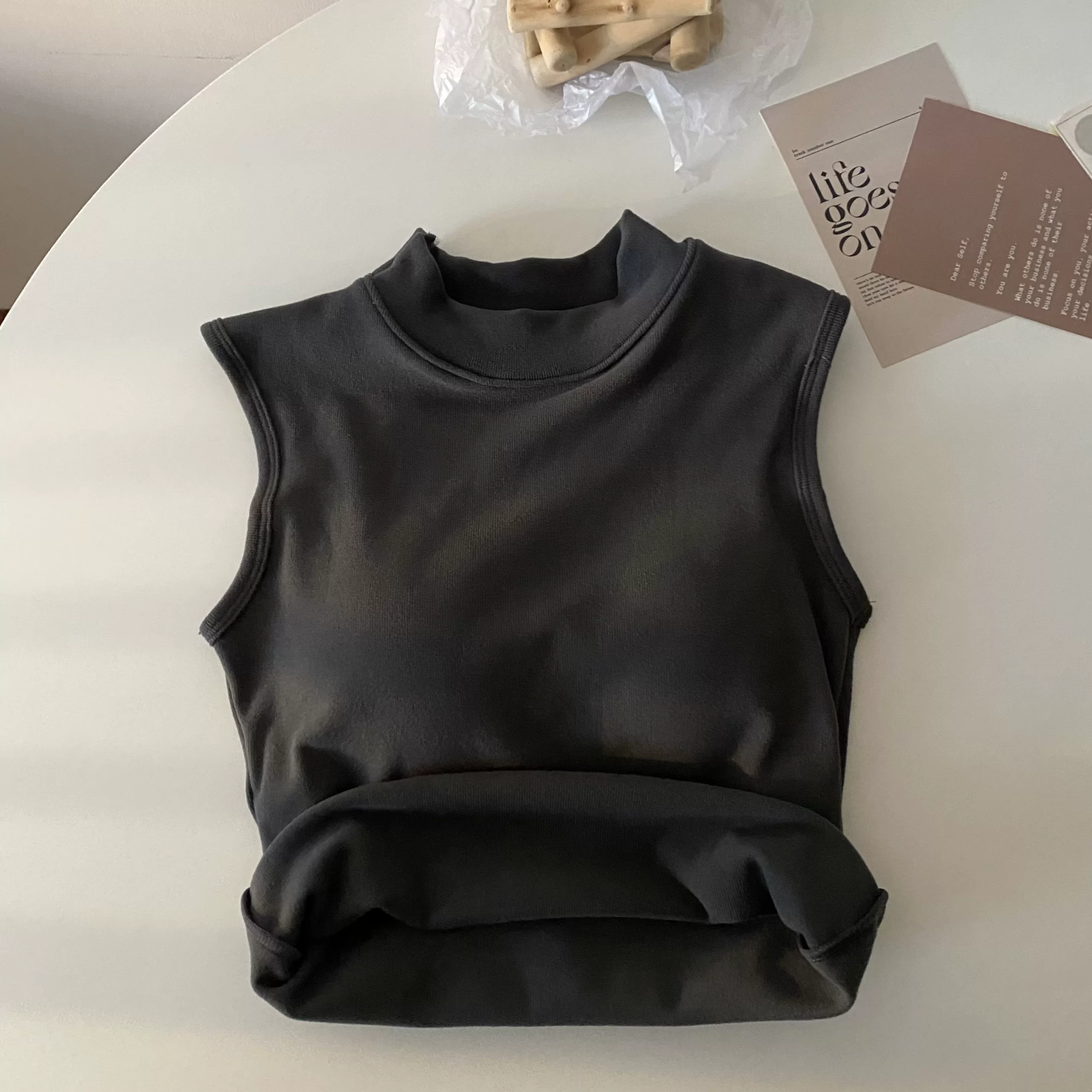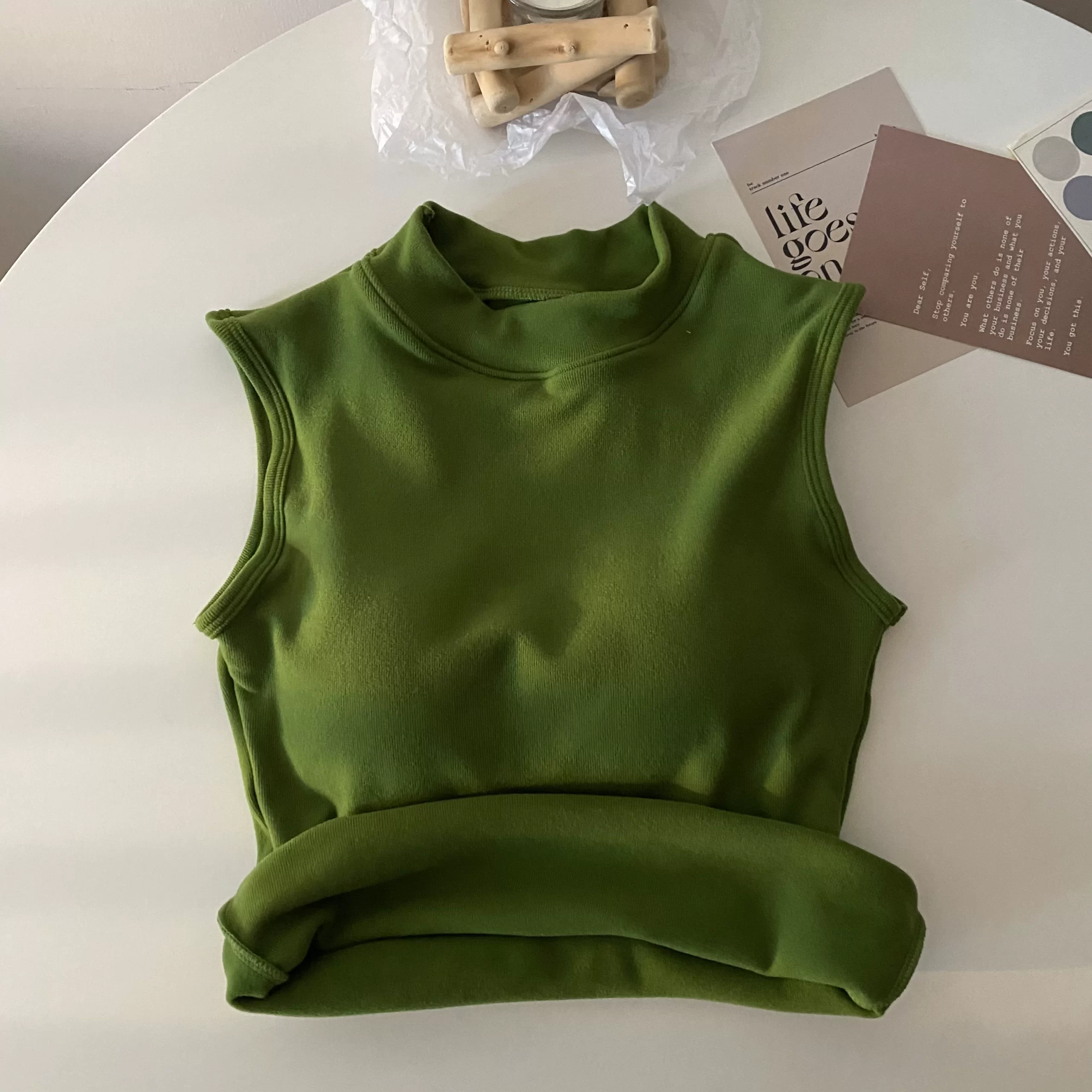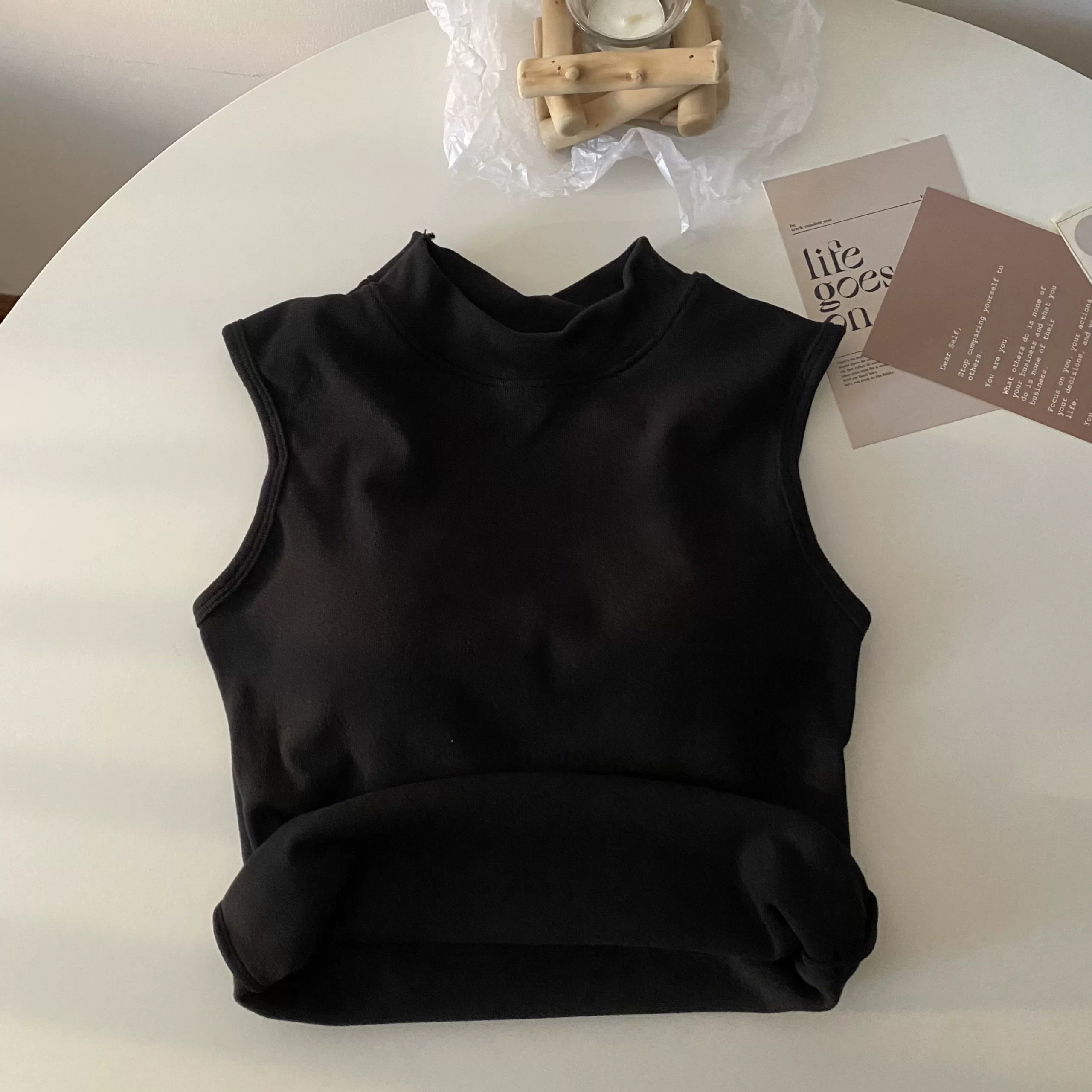 | nameOriginal | Brushed thickened apricot color sleeveless thermal slim vest |
