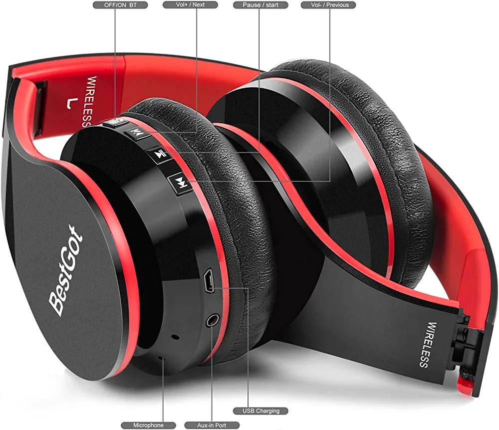 BestGot BT6002 Bluetooth headphones Bluetooth pairing aided by voice prompts, promises quick and stable connection with your Bluetooth enabled devices, powerful Bluetooth function. The built-in microphone can only be used in wireless mode. Siri smart voice dialing calls make your life and work more convenient. High-quality sound can make your call more clear and smooth.