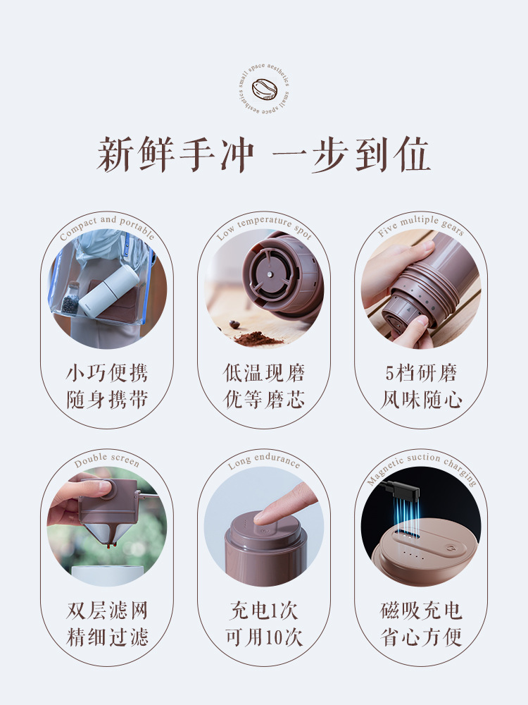 | nameOriginal | BTV4 portable electric bean grinding coffee machine grinding Integrated Household small freshly ground American drip hand punching Cup |