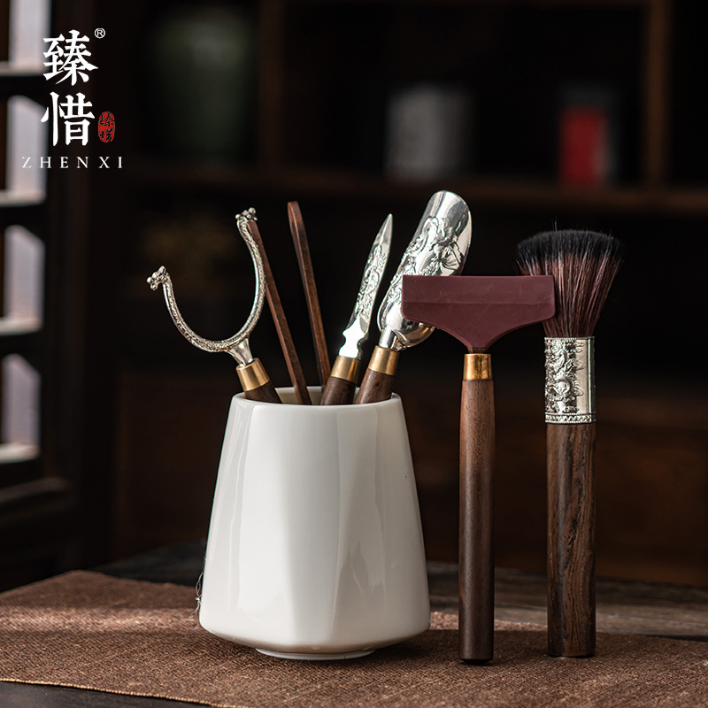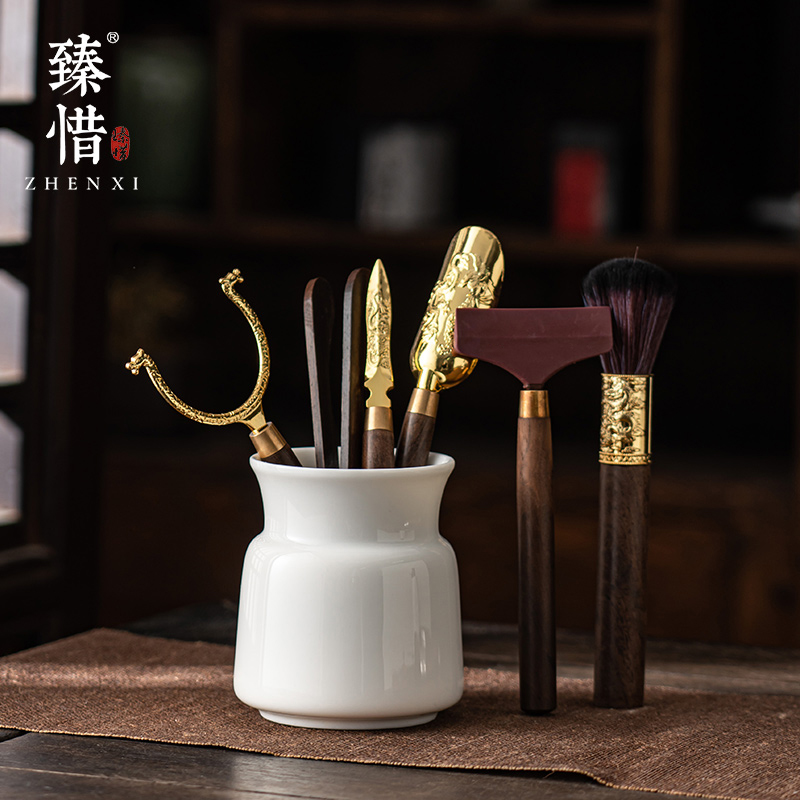 | nameOriginal | BTV4 Suette Jade White Porcelain Tea Ceremony Six Gentleman suit Tea Holder Tea Spoon Ebony Kung Fu Tea Set for Tea |