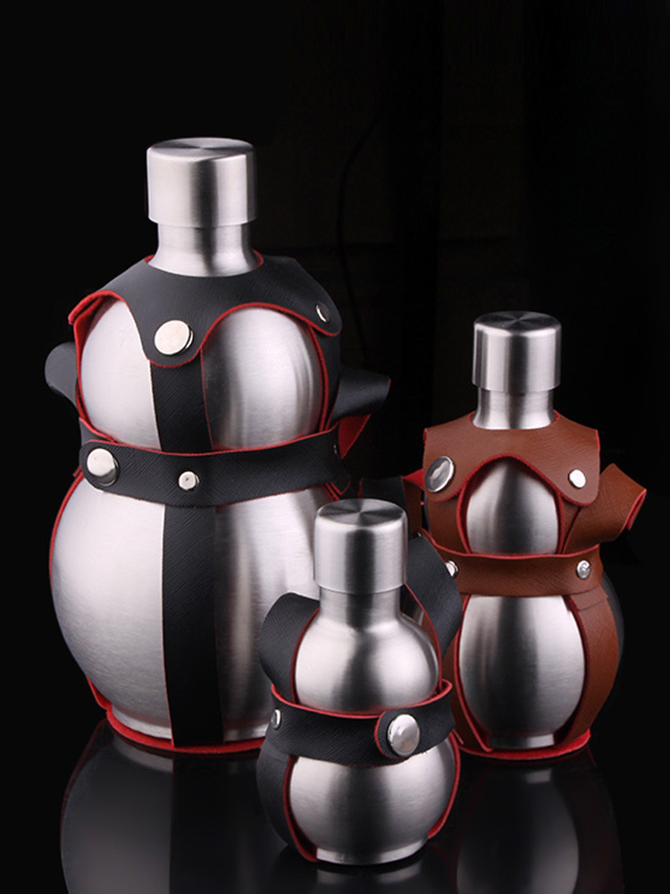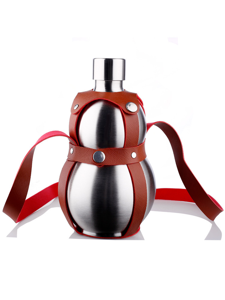 | nameOriginal | BTV4304 stainless steel gourd wine pot outdoor portable wine gourd kettle strap leather cover thickened stainless steel |