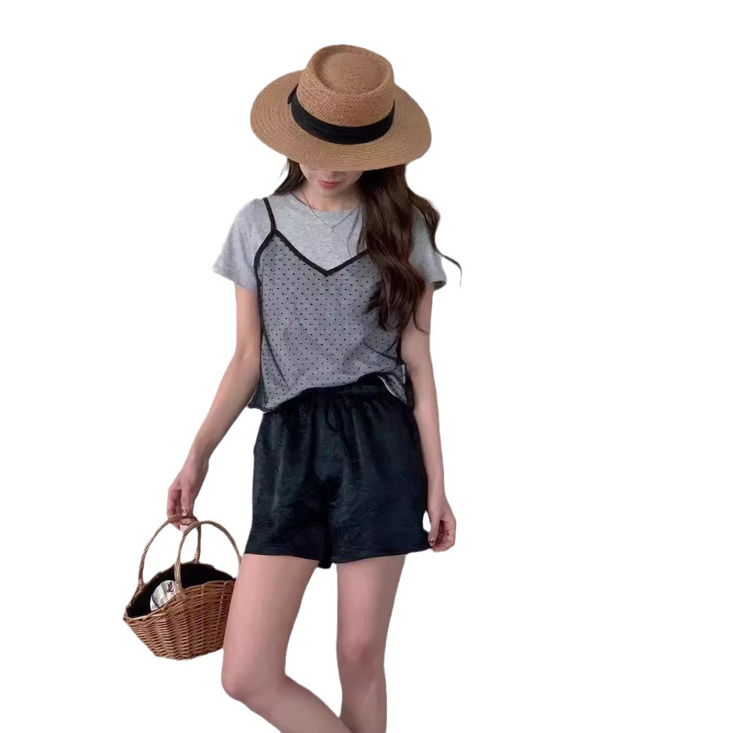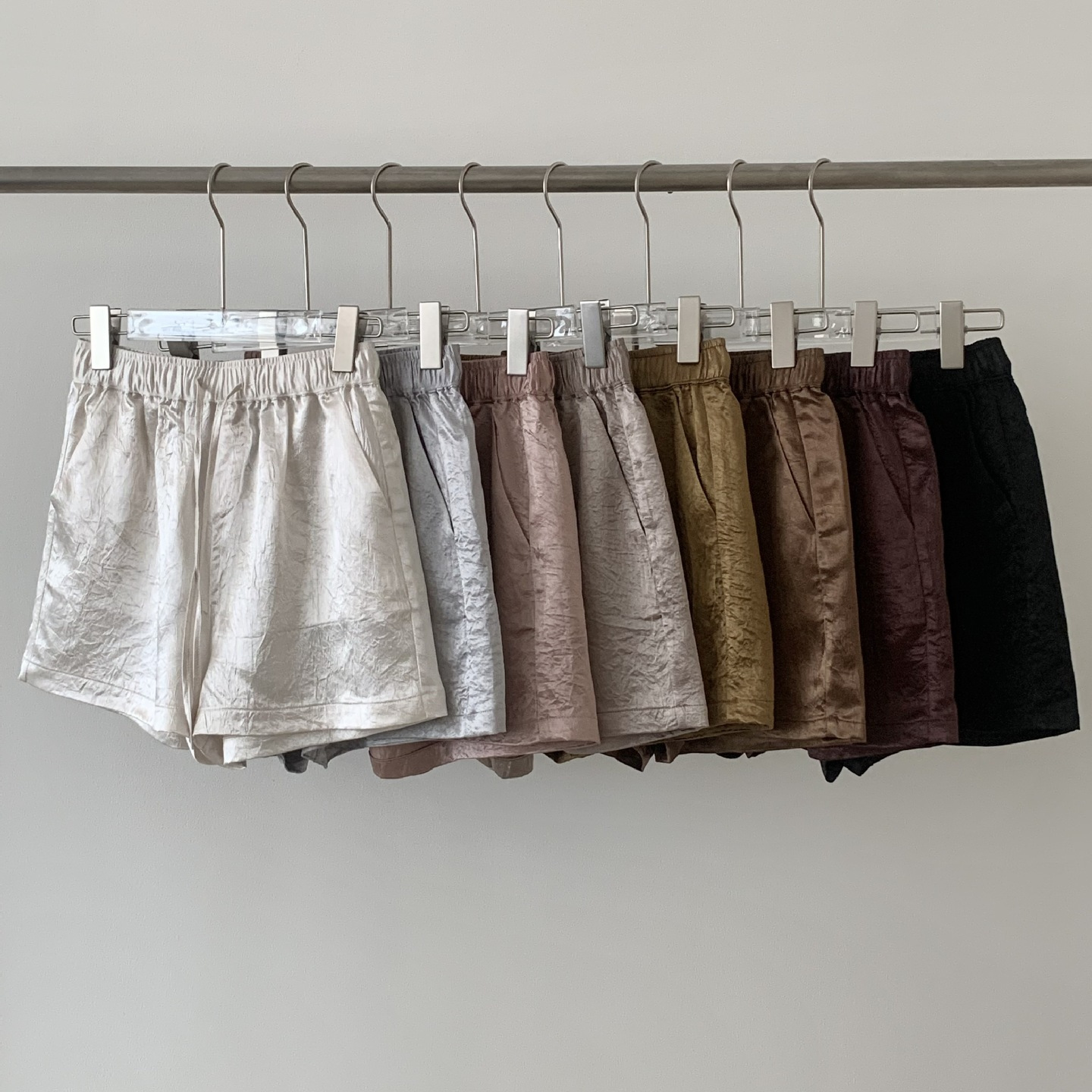 Bubble Sand Ice Wrinkle Texture Heavy Acetic Satin Commuter A- Line Shorts Loose High Waist Draping Casual Pants