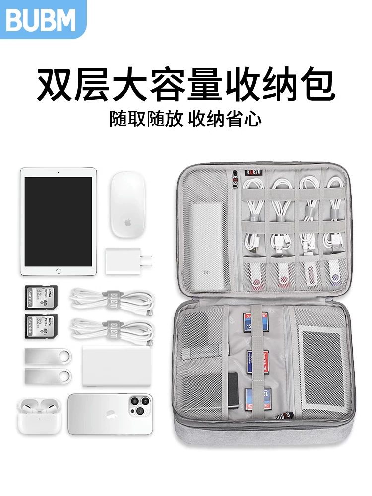BUBM data cable storage package small headphone cable anti -entanglement and tidal tablet mobile phone charger mouse power package U shield storage box large -capacity electronic product digital storage package
