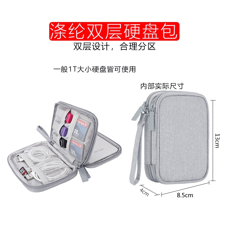 BUBM mobile hard drive bag is shock-proof and drop-proof, suitable for Toshiba Seagate WD Western Digital 2.5-inch hard drive protective cover double-layer Lenovo Samsung SanDisk hard drive storage bag box small
