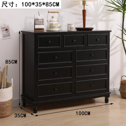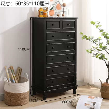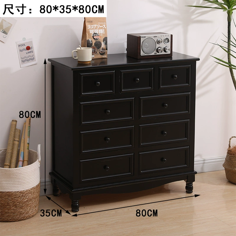 Bucket solid wood American simple storage wall small cabinet bedroom living room drawer side cabinet storage cabinet black