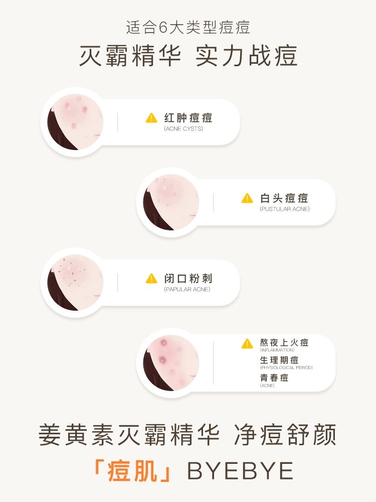 Bufferin Curcumin Soybean Essence soothes redness, stabilizes acne muscles, fades oil, controls acne marks, and closes acne