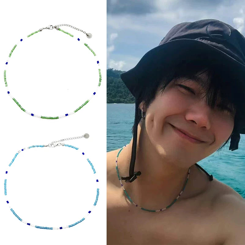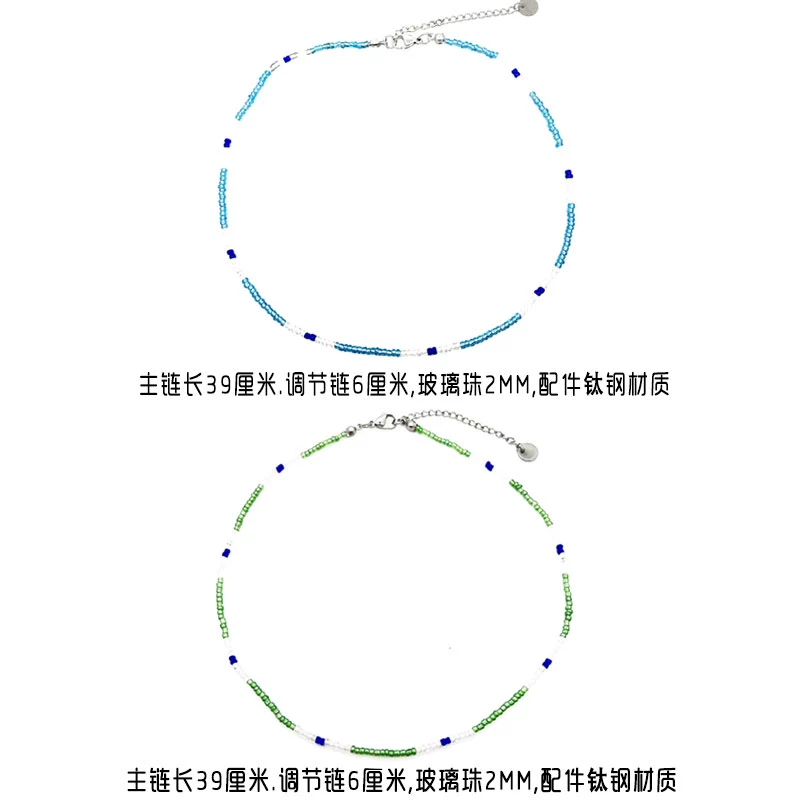 | nameOriginal | Build Jinjian's same blue-green transparent white glass bead stitching necklace collar clavicle milk gangster young master pete |