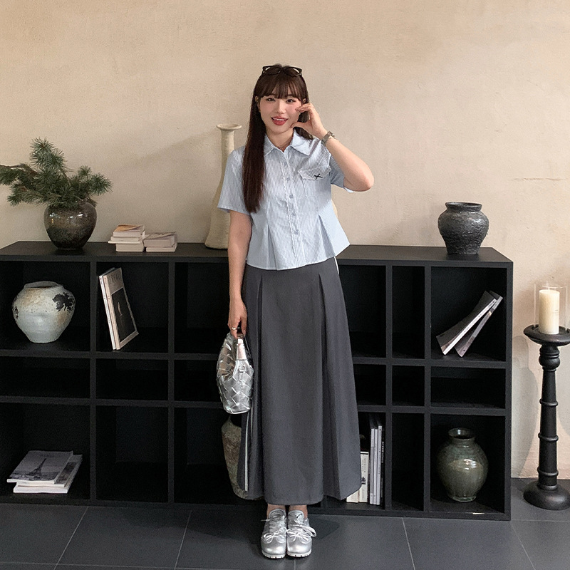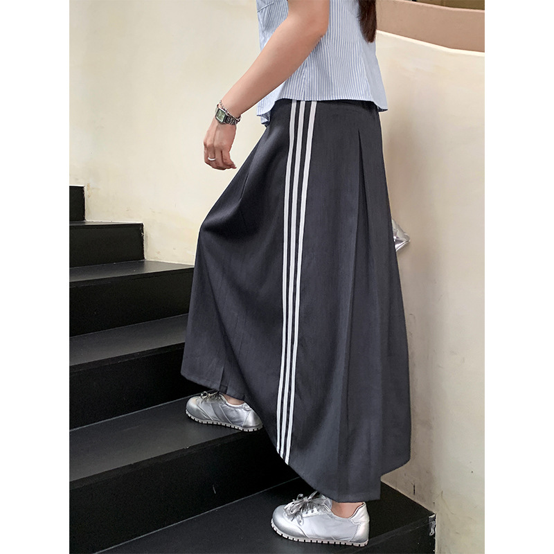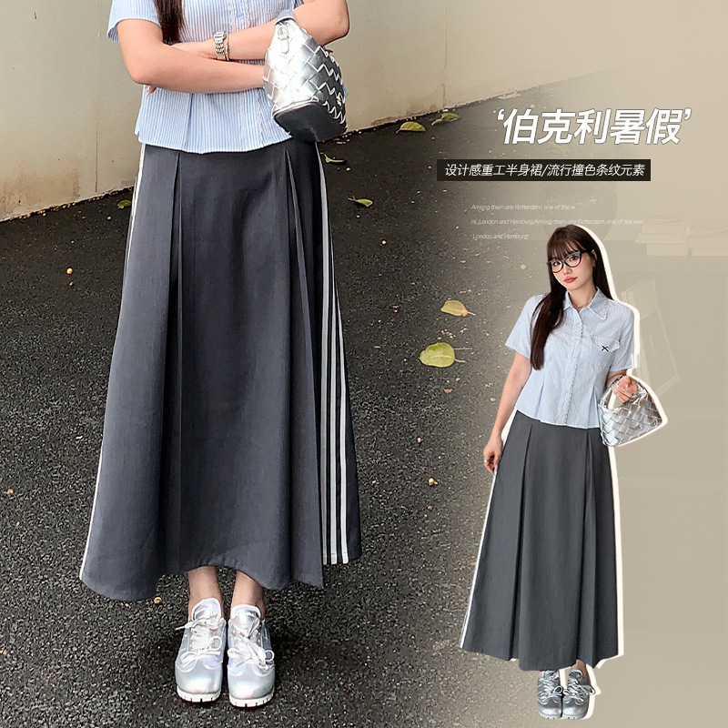 | nameOriginal | Bumping White Strip Pleated Suit Skirt Women's Summer plus size chubby girl High Waist Slimming A- shaped Mid-length Pleated Skirt 65006 |