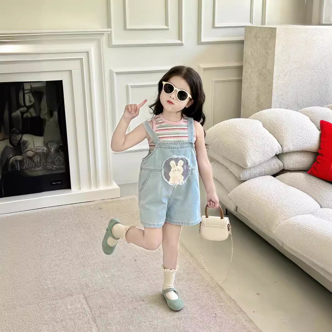| nameOriginal | Bunny suspenders Pink Sweetheart Striped Vest 2024 Summer New Korean Children's Suit |