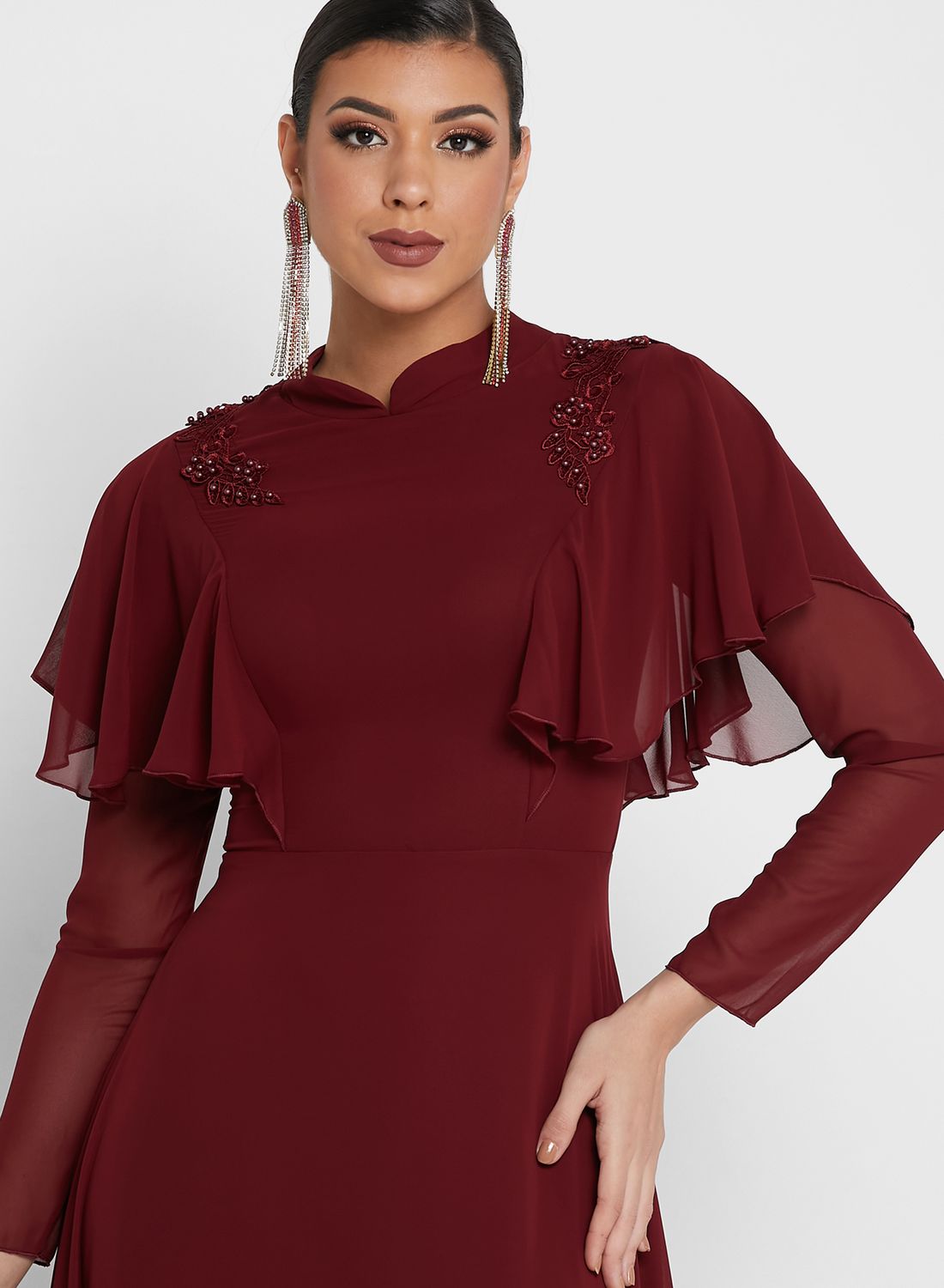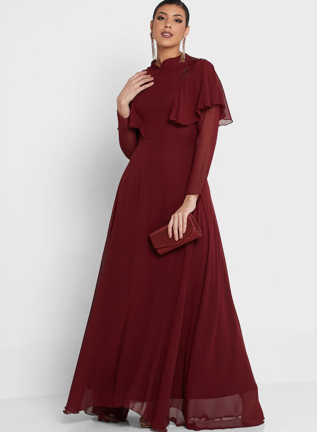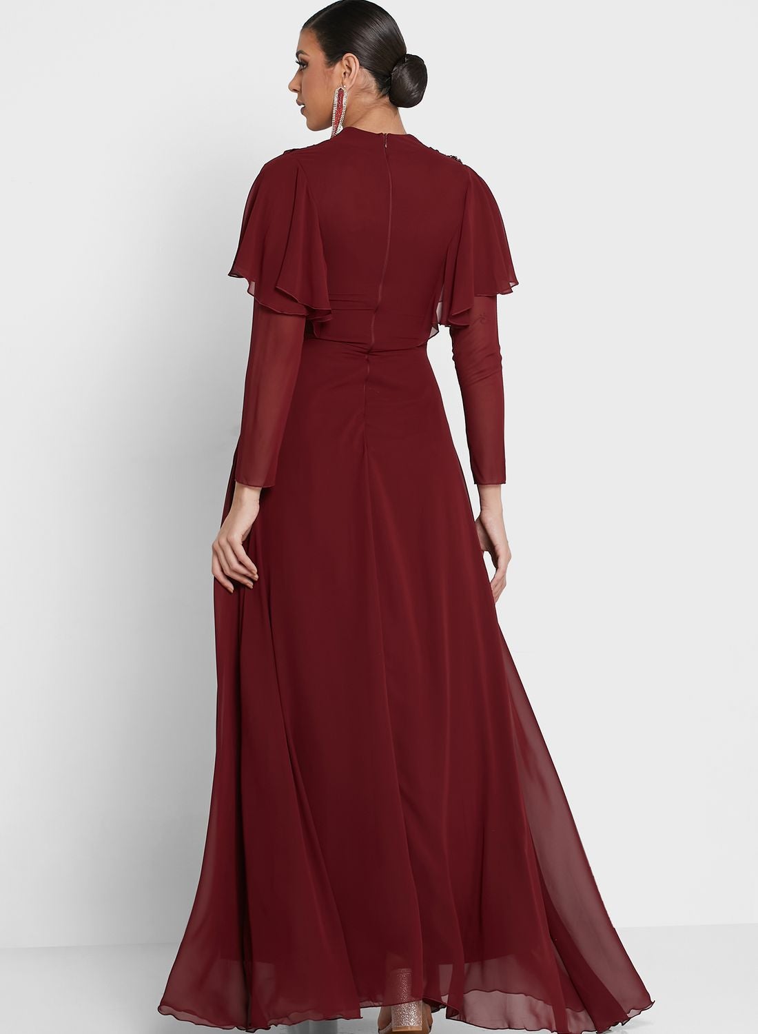 | nameOriginal | Three-Quarter Sleeves A-Line Maxi Dress Burgundy |