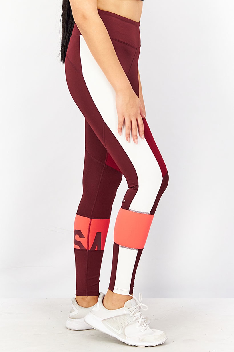Women Sport Fit High Waist Brand Logo Tight, Burgundy Combo