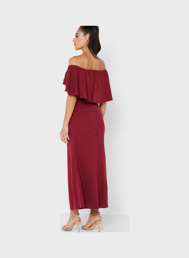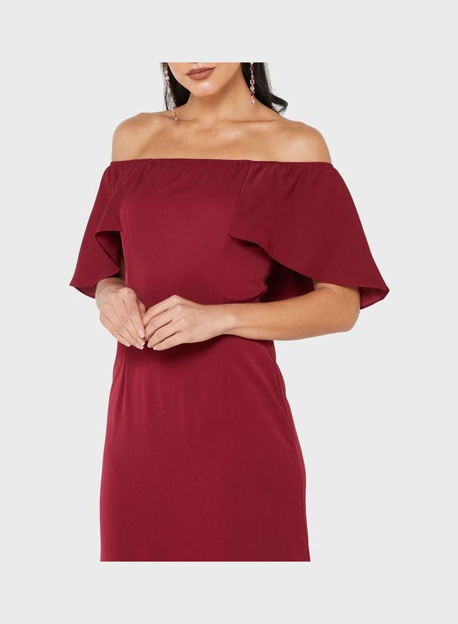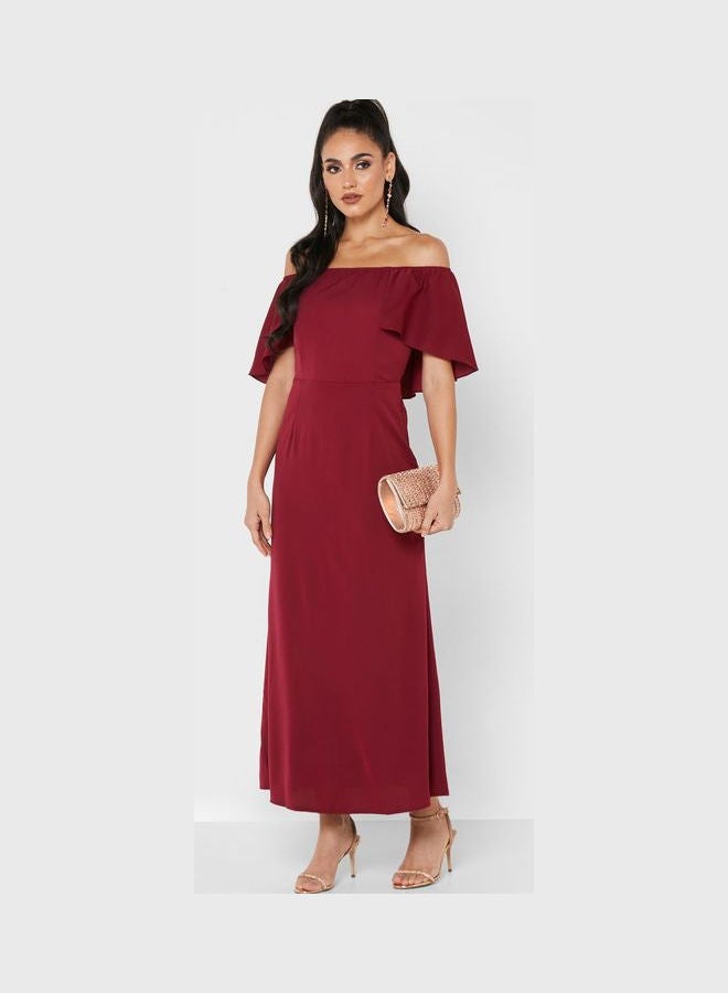 | nameOriginal | Off Shoulder Ruffle Sleeve Fit & Flare Dress Burgundy |