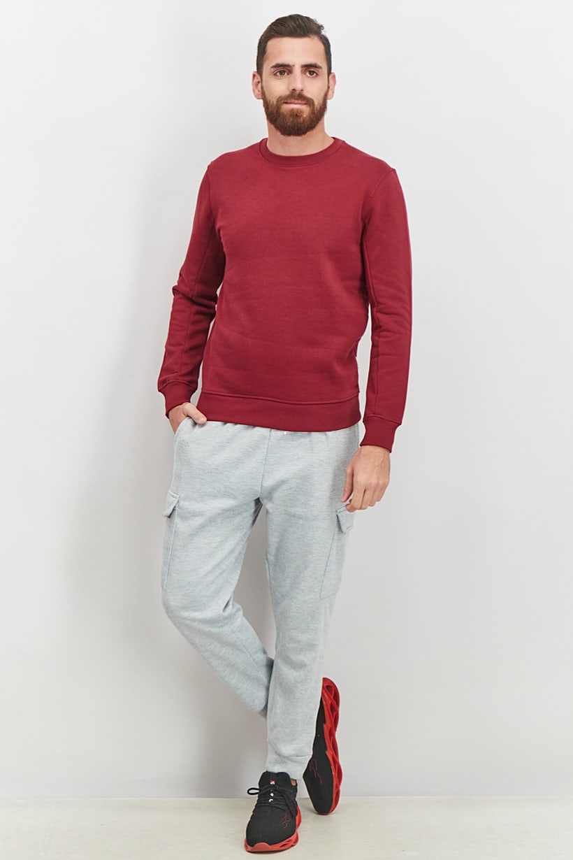 | nameOriginal | Men Crew Neck Long Sleeve Plain Sweatshirt, Burgundy |