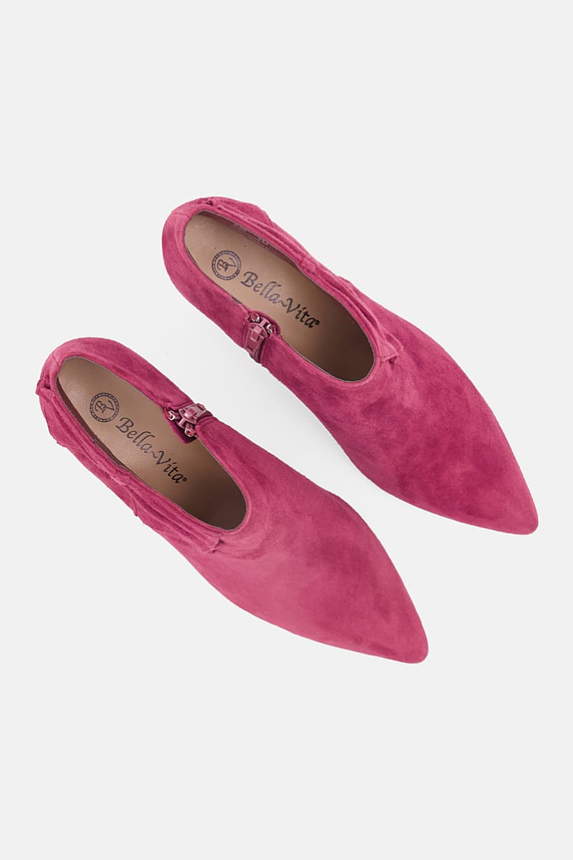These ankle boots are perfect for women who prefer a kitten heel style. They feature a pointed toe and a zipper closure for easy wear. The synthetic sole provides durability and the medium shoe width ensures a comfortable fit. Made from high-quality leather and suede, these boots are ideal for casual occasions. The heel height is 2.5″ / 6.3 cm and the color family is purple.