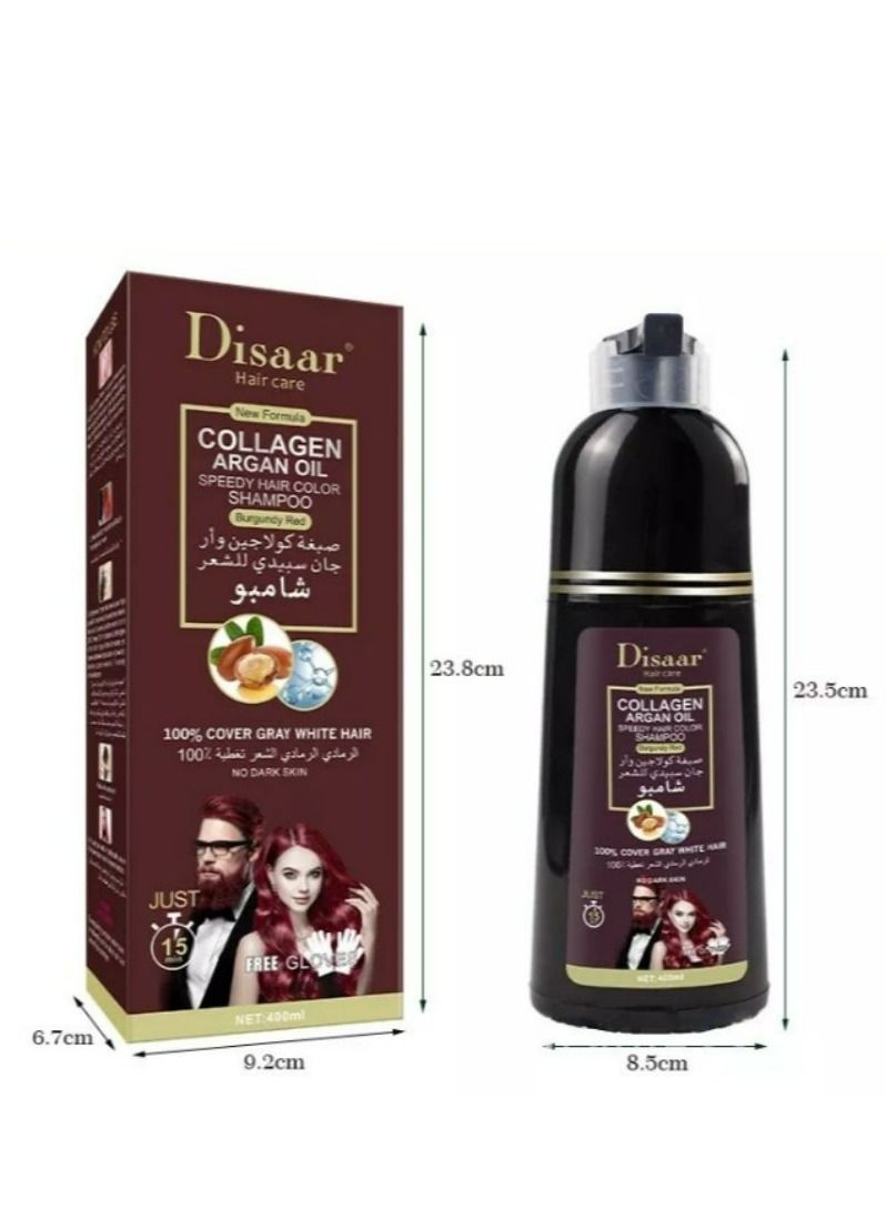 | nameOriginal | COLLAGEN ARGAN OIL SPEEDY HAIR COLOR SHAMPOO (Burgundy red) 400ML |