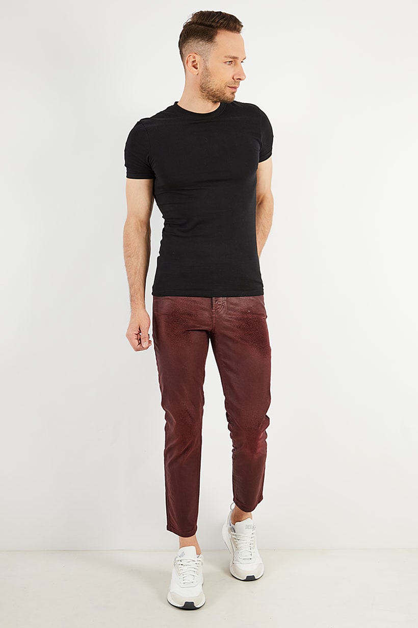 | sub_Categories | Men Clothing, Jeans, men slim fit solid stretchable denim burgundy |
