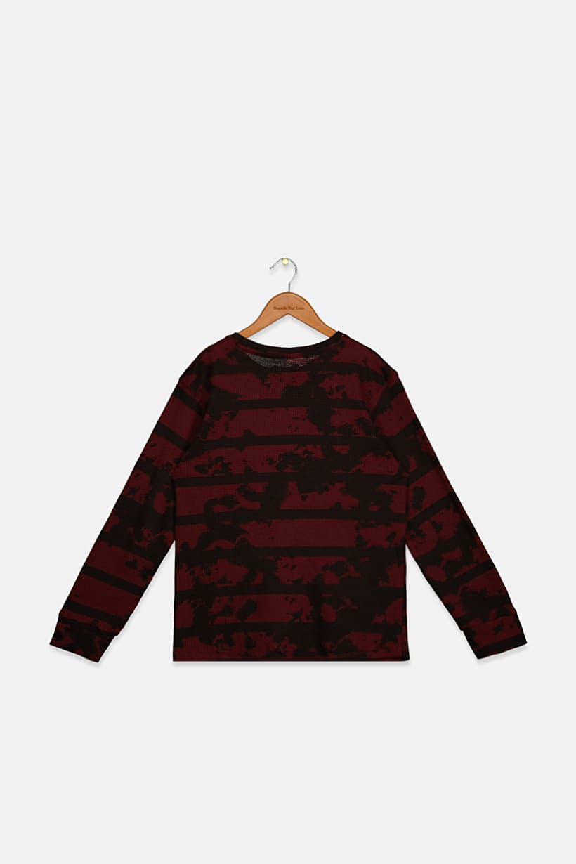 | descriptionOriginal | Care : Machine washable, Ideal For : Boys, Sleeve Length : Long Sleeve, Type of Hem : Straight hem , Type of Neckline & Collar : Crew neckline , Disclaimer : Product color may slightly vary due to photographic lighting sources or your monitor settings., Fabrics : 60% Cotton, 40% Polyester, Occasion : Casual, Pattern & Print : Allover print, Type of Sleeve : Long sleeve , Types of Closures : Pullover, Color Family : Maroon, |