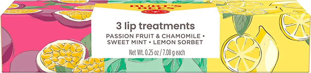 | nameOriginal | Burt's Bees Lip Mask Treatment, Mothers Day Gifts, Overnight Intensive Lip Treatment, Revives and Nourishes – Includes Passion Fruit & Chamomile, Sweet Mint & Lemon Sorbet (3-Pack) |