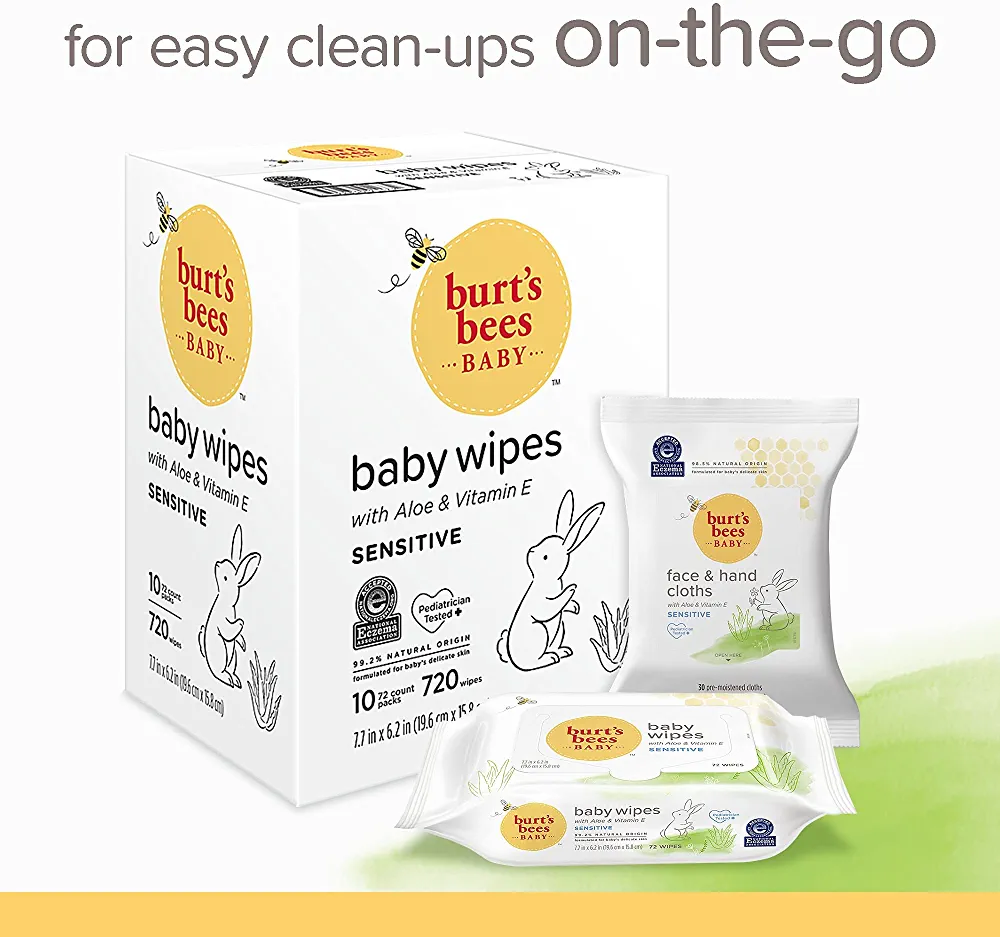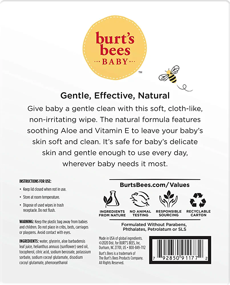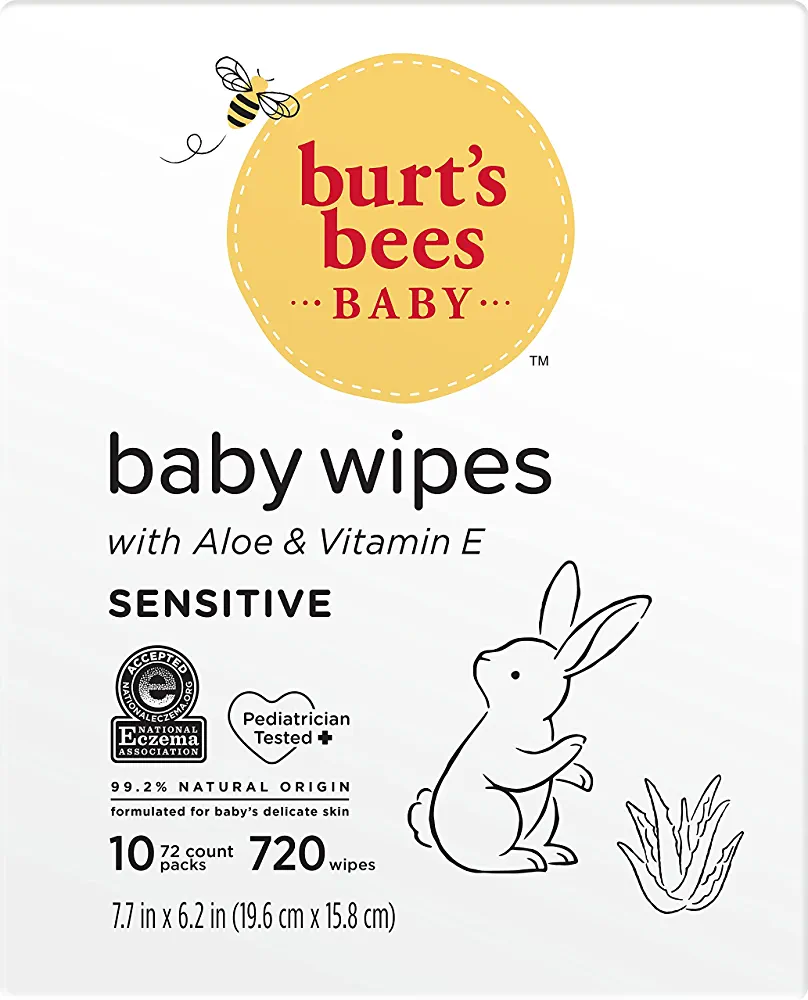 | nameOriginal | Baby Wipes, Burt's Bees Unscented Towelettes for Sensitive Skin, Hypoallergenic & Non-Irritating, All Natural with Soothing Aloe & Vitamin E, Fragrance Free, 72 count ( Pack of 10) |