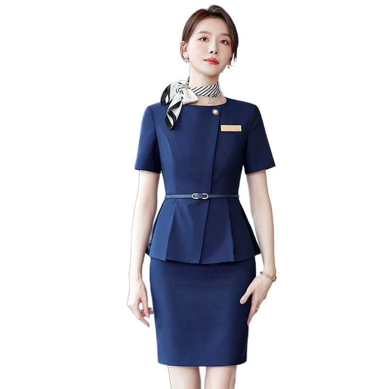| nameOriginal | Business wear women's skirt 2024 fashion summer short sleeve ruffled suit OL commuter beauty salon worker overalls |